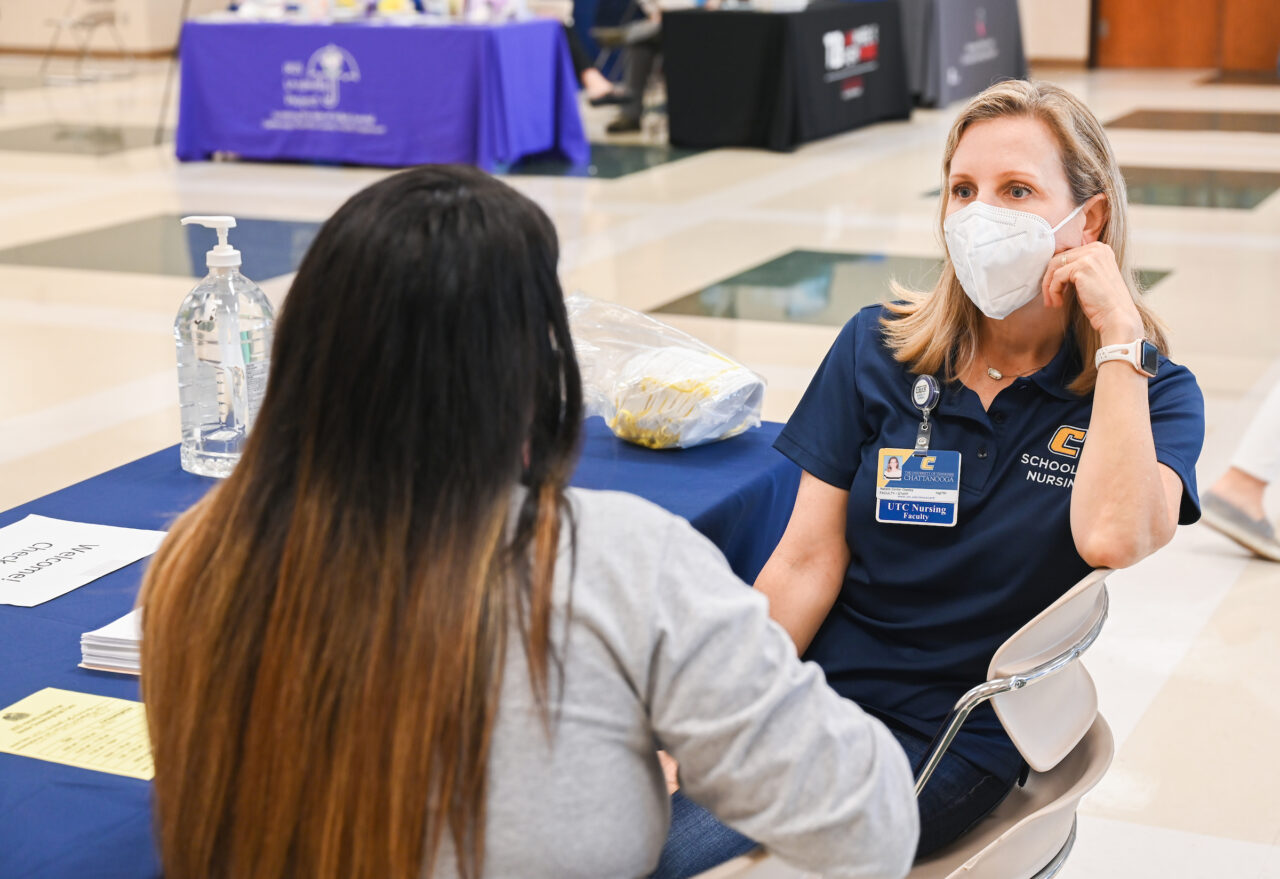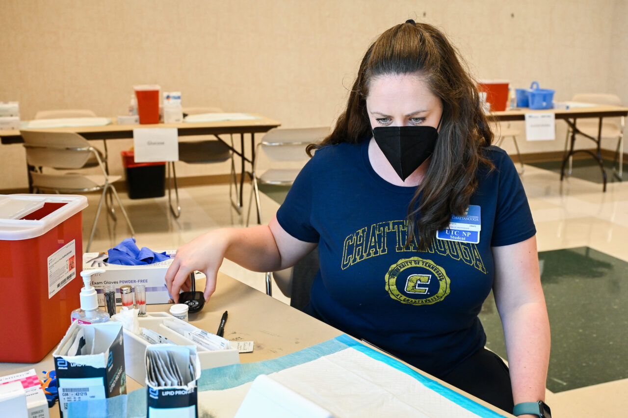Nikki Goddard, on schedule to graduate from the family nurse practitioner program in May 2023, was among the UTC nurse practitioner personnel set up in a series of University Center Chattanooga Room stations.