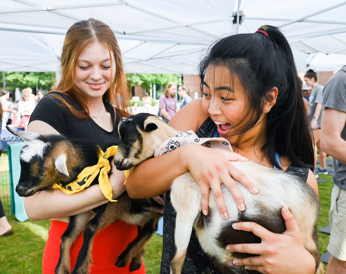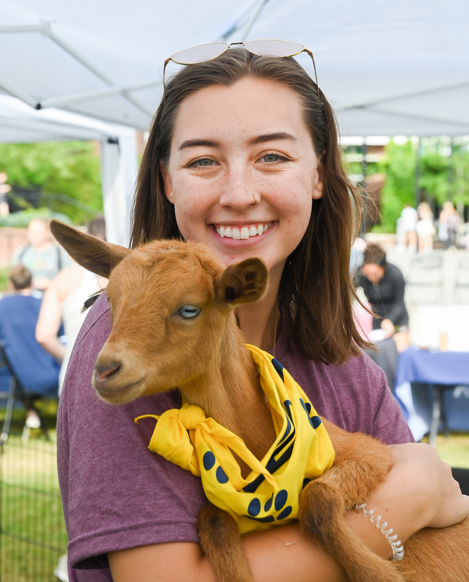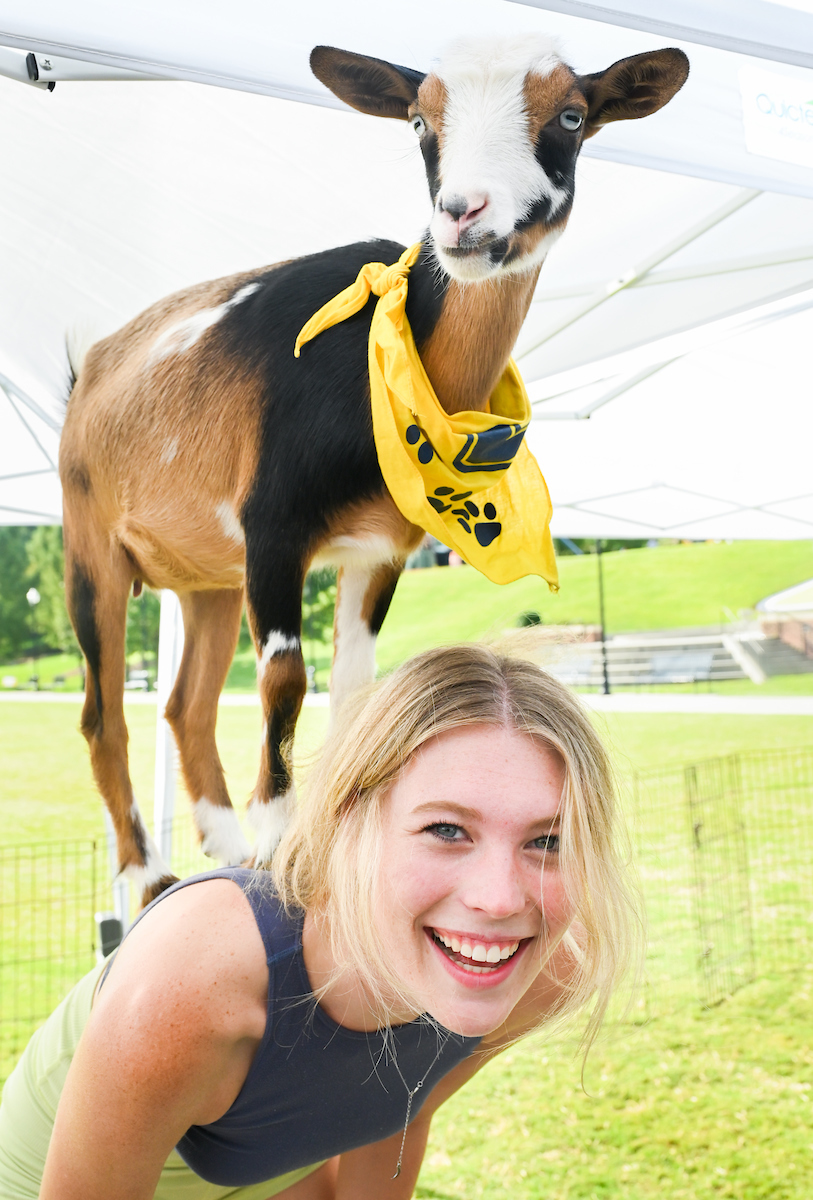 Goat yoga has been taking place on Chamberlain Field since 2018, one of the many Welcome Week events hosted at the beginning of fall semester.