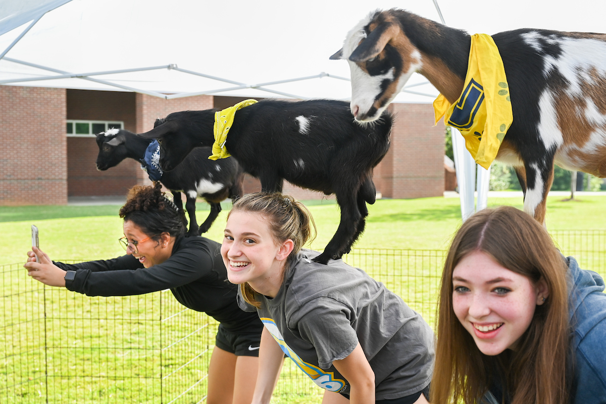 Kimora Parker, a freshman in pro-professional biology from Jackson, Tennessee, said she knows people who had previously tried goat yoga.