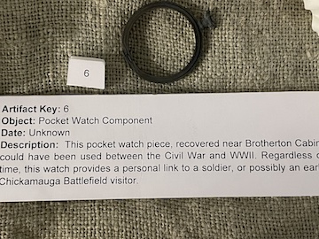 Each is on display in glass cases at the Chickamauga Battlefield Visitor Center in Fort Oglethorpe, Georgia. Each was uncovered on the battlefield by a student at the University of Tennessee at Chattanooga.