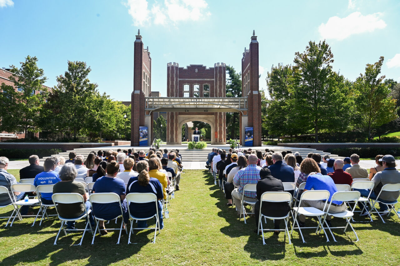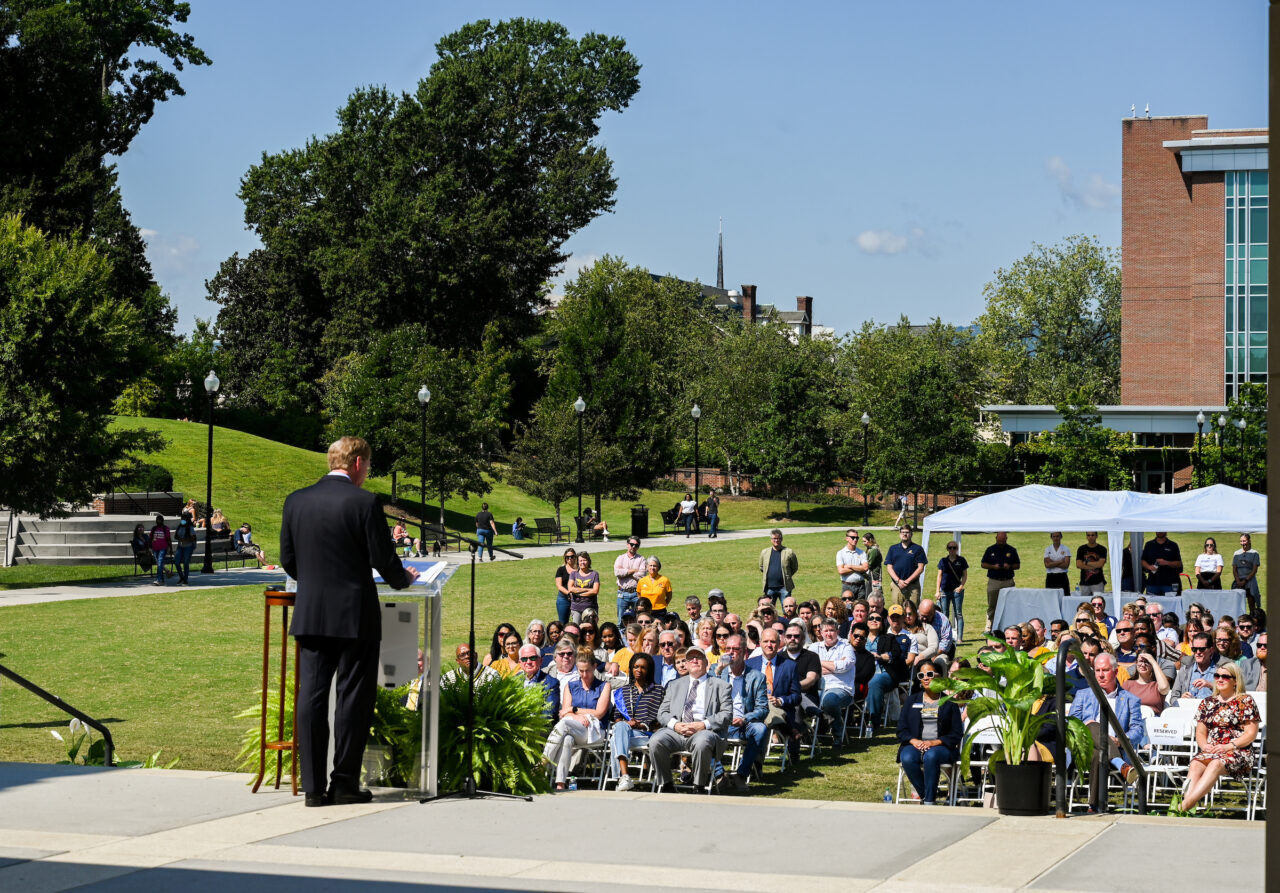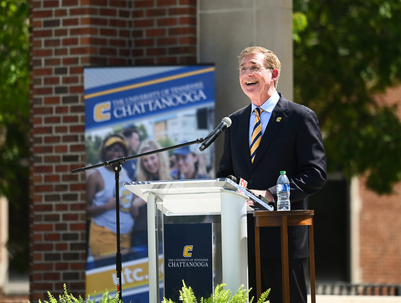 “The highest reward is not what you get for doing it, but what you become from doing it. As time and your life journey move on, consider the choices that shaped you the most. The path taken and the one left for another time. What we did and what we did not do,” University of Tennessee at Chattanooga Chancellor Steven R. Angle said in his 2022 State of the University address. The outdoor presentation on Chamberlain Field at UTC marked the first in-person State of the University address since COVID-19 struck in spring 2020.