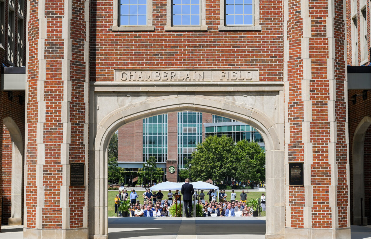 Chancellor Steve Angle delivers the State of the University speech Friday, Sept. 16, 2022, on Chamberlain Field.