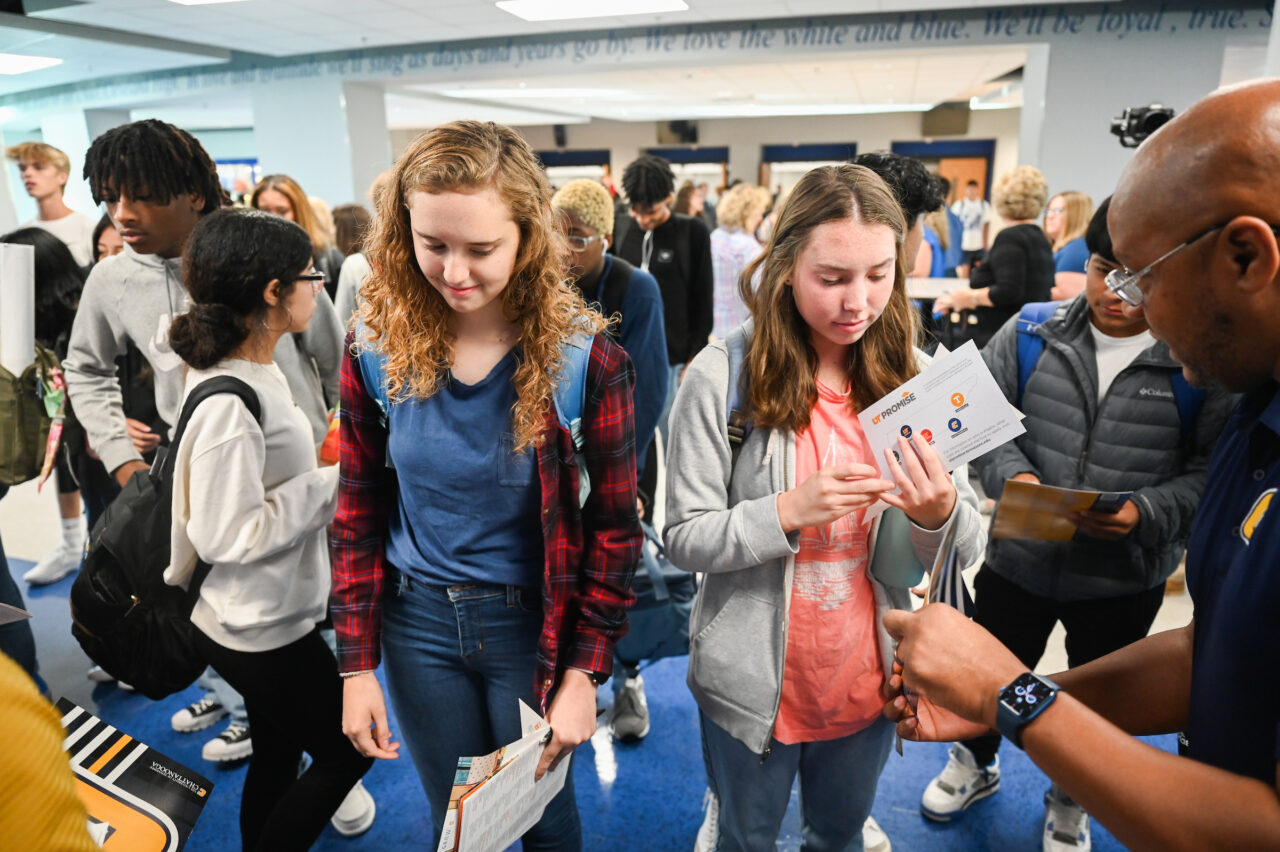 University of Tennessee at Chattanooga Chancellor Steven R. Angle joined Boyd in meeting with high school juniors and seniors and talking about the availability of UT Promise.