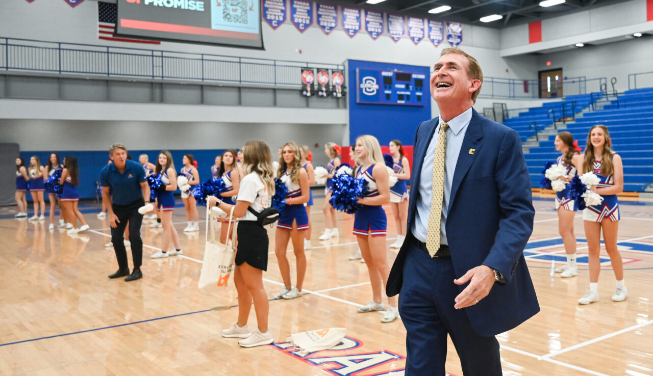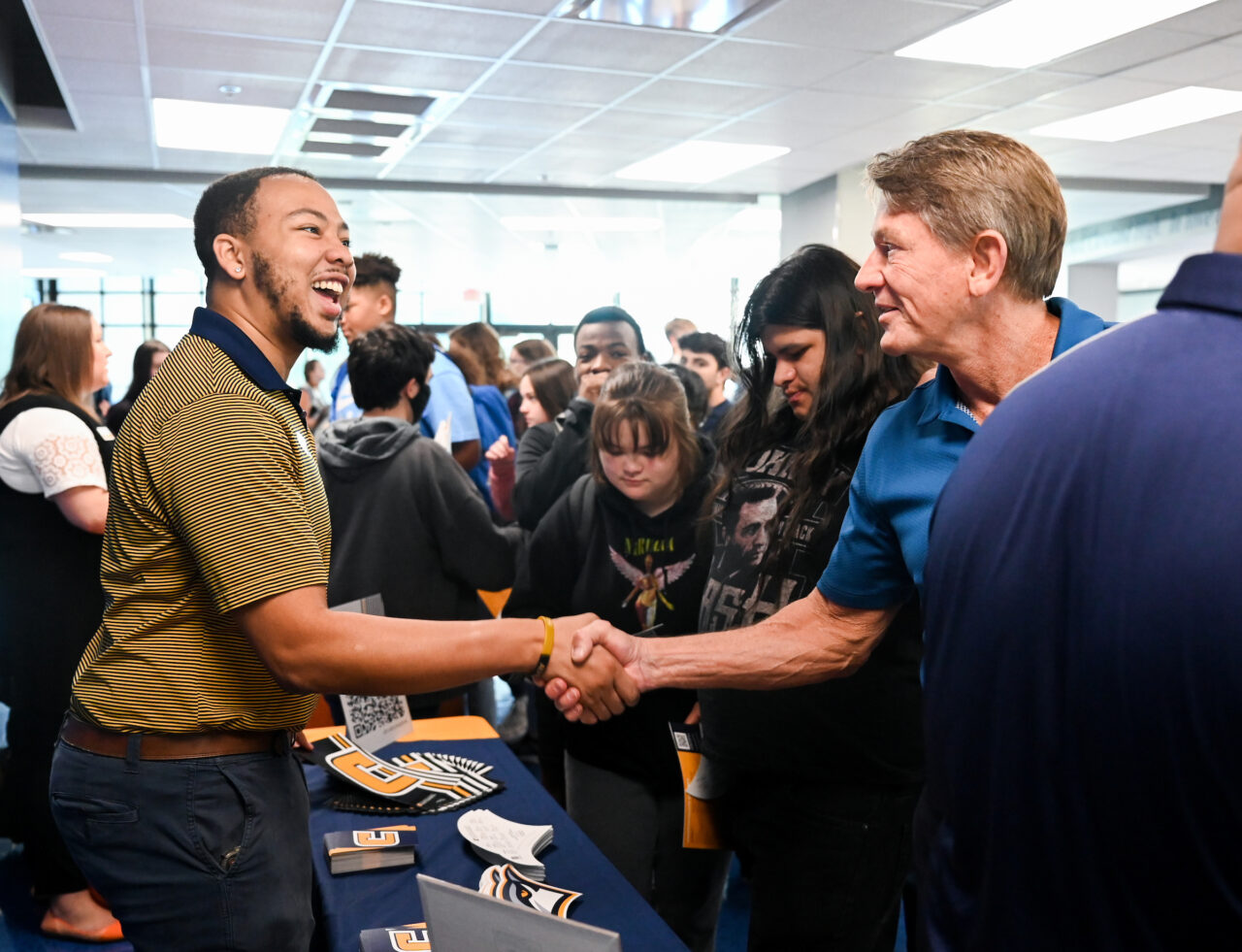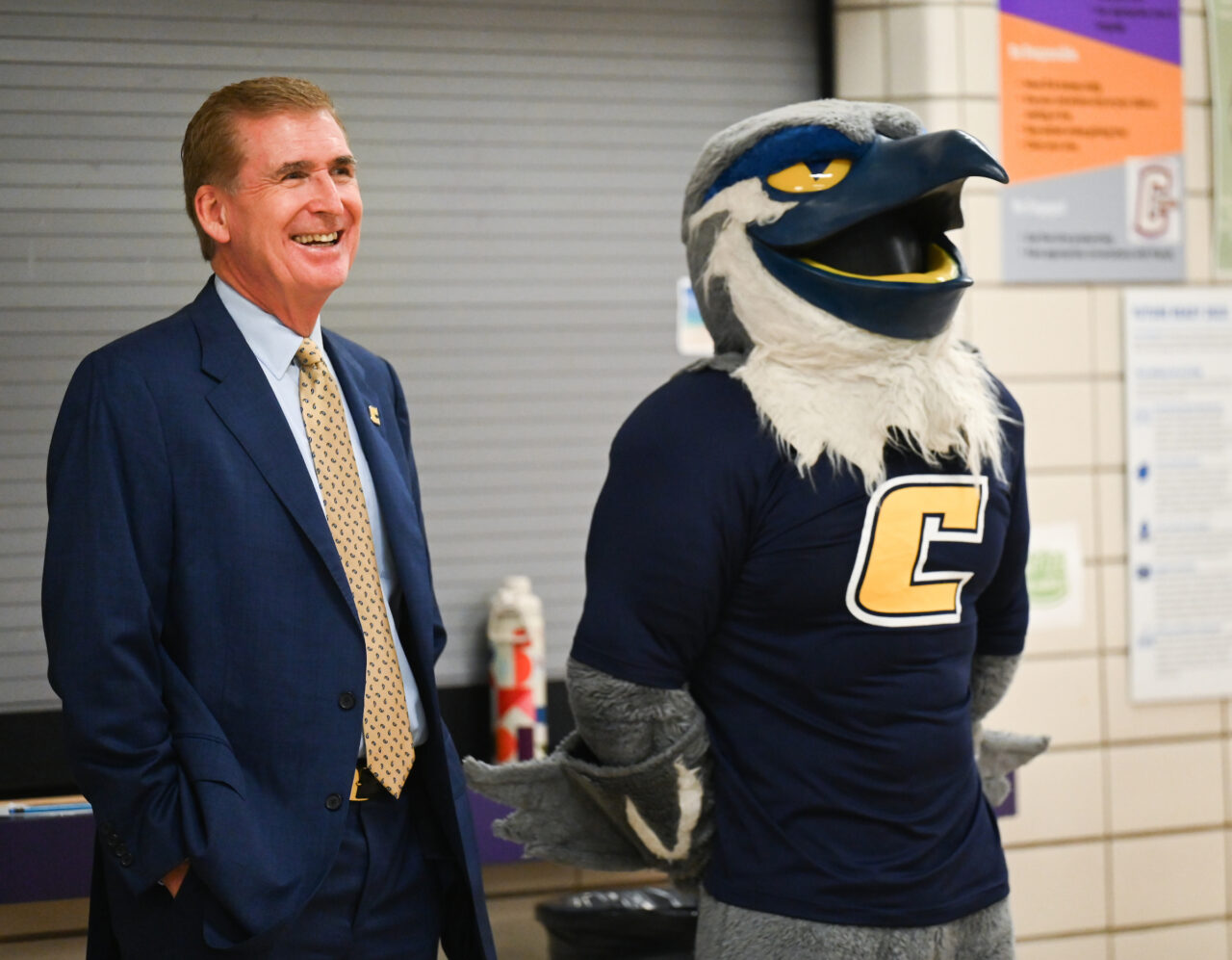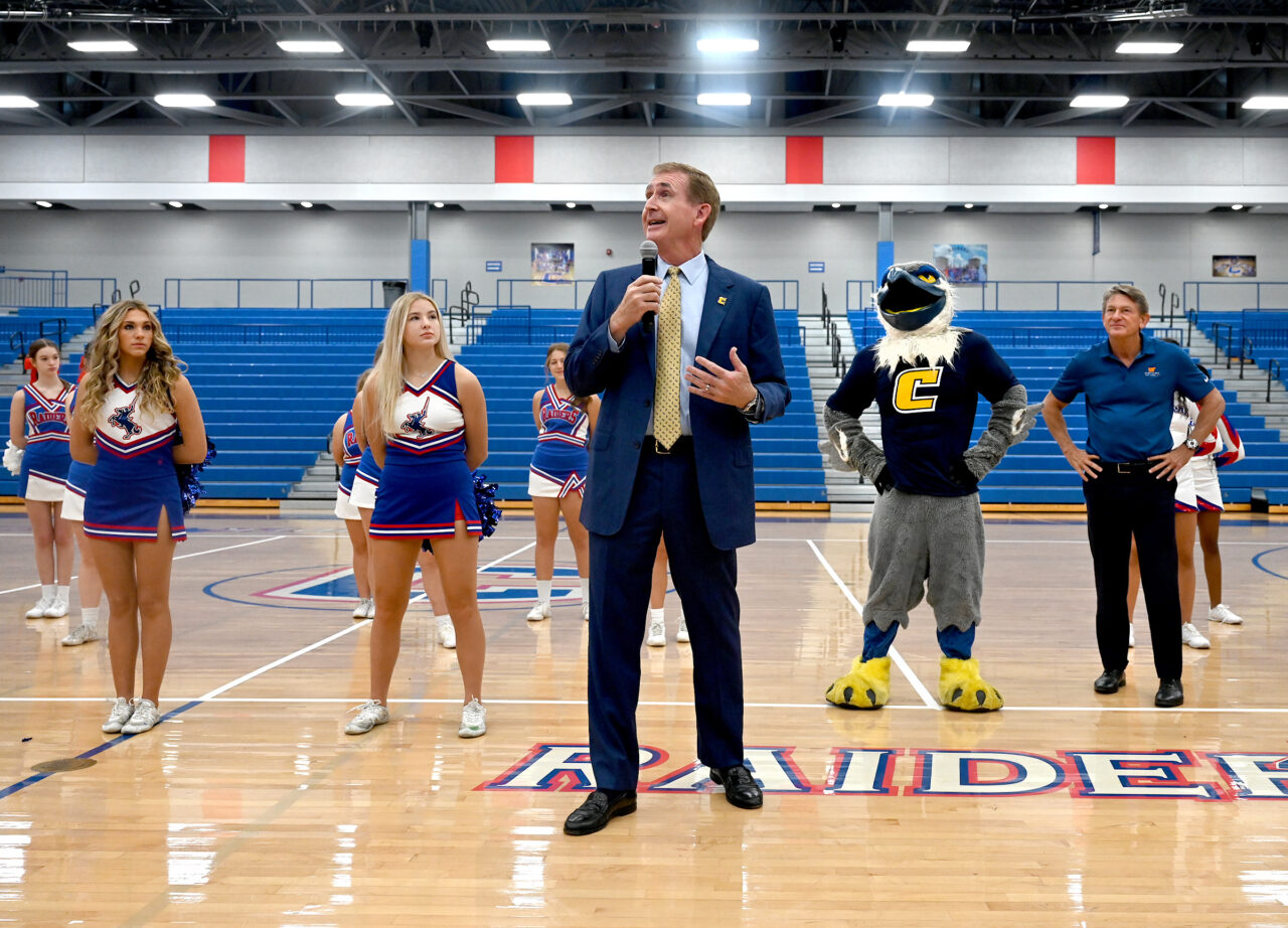 “We have programs to get our students involved and engaged, to solve problems, to do research with faculty,” said Angle, who was joined by and introduced UTC’s mascot Scrappy. “There’s always excitement and the campus is small enough where you get to know faculty.