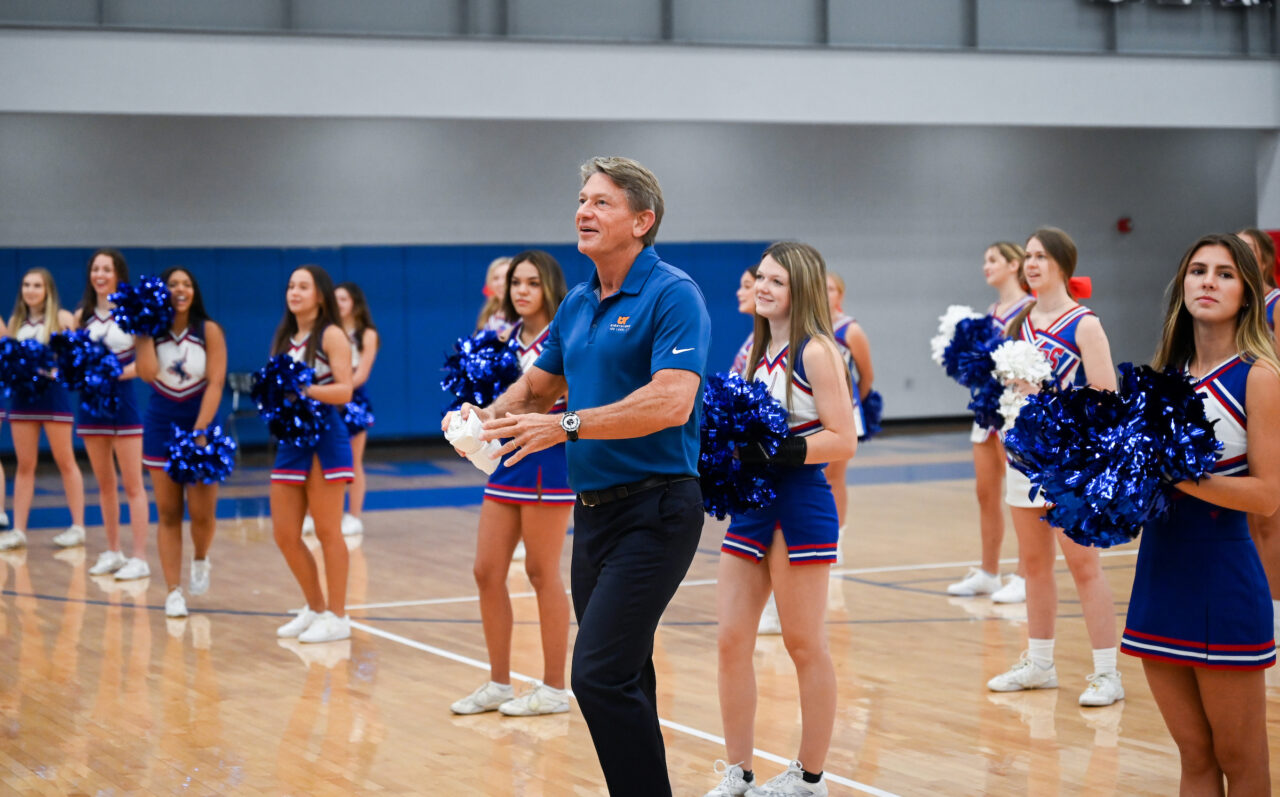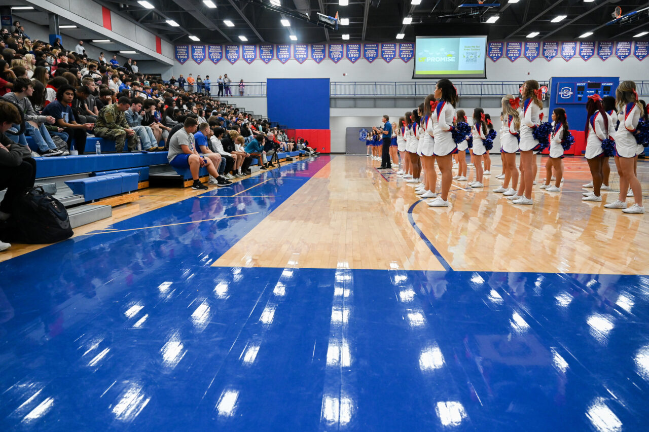 Several hundred Cleveland High School students crowded the school gymnasium for the 8 a.m. event, where Boyd and Angle also tossed UT Promise T-shirts into the stands.