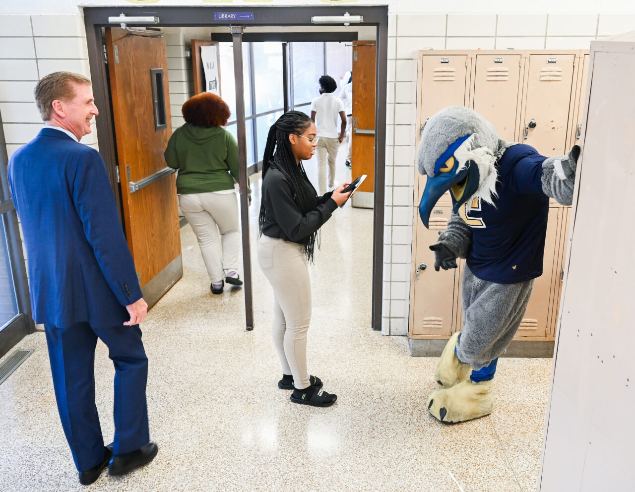 Scrappy took photos with Central High School students during the UT Promise visit.