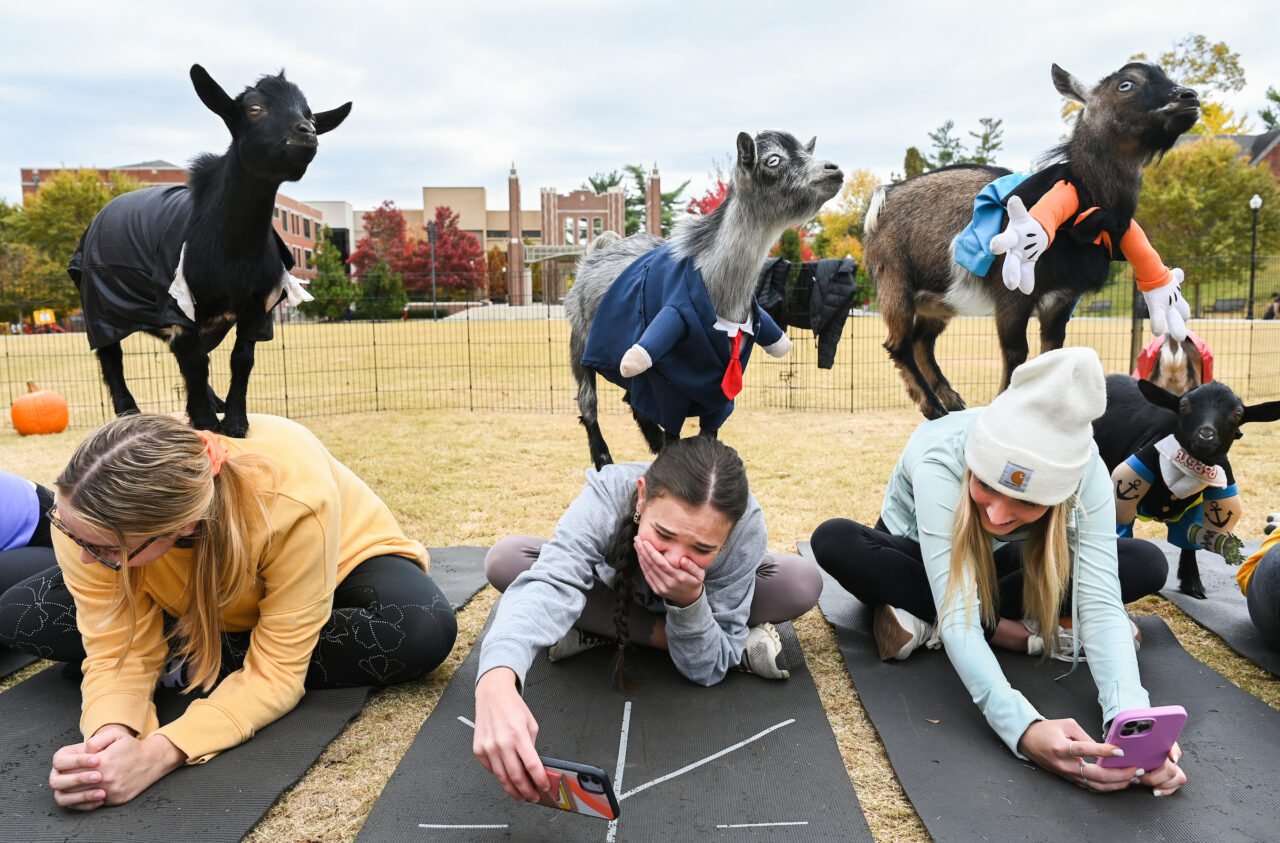 Goblins and goats: Scenes from Halloween Goat Yoga
