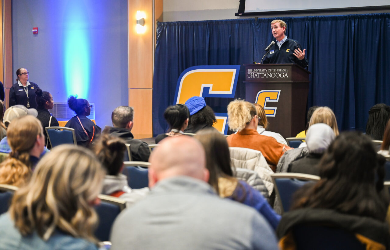 The University of Tennessee at Chattanooga’s inaugural UTC Road Trip: The Power C Tour returned home on Wednesday, Nov. 16, with a standing-room-only event in the University Center Tennessee Room.