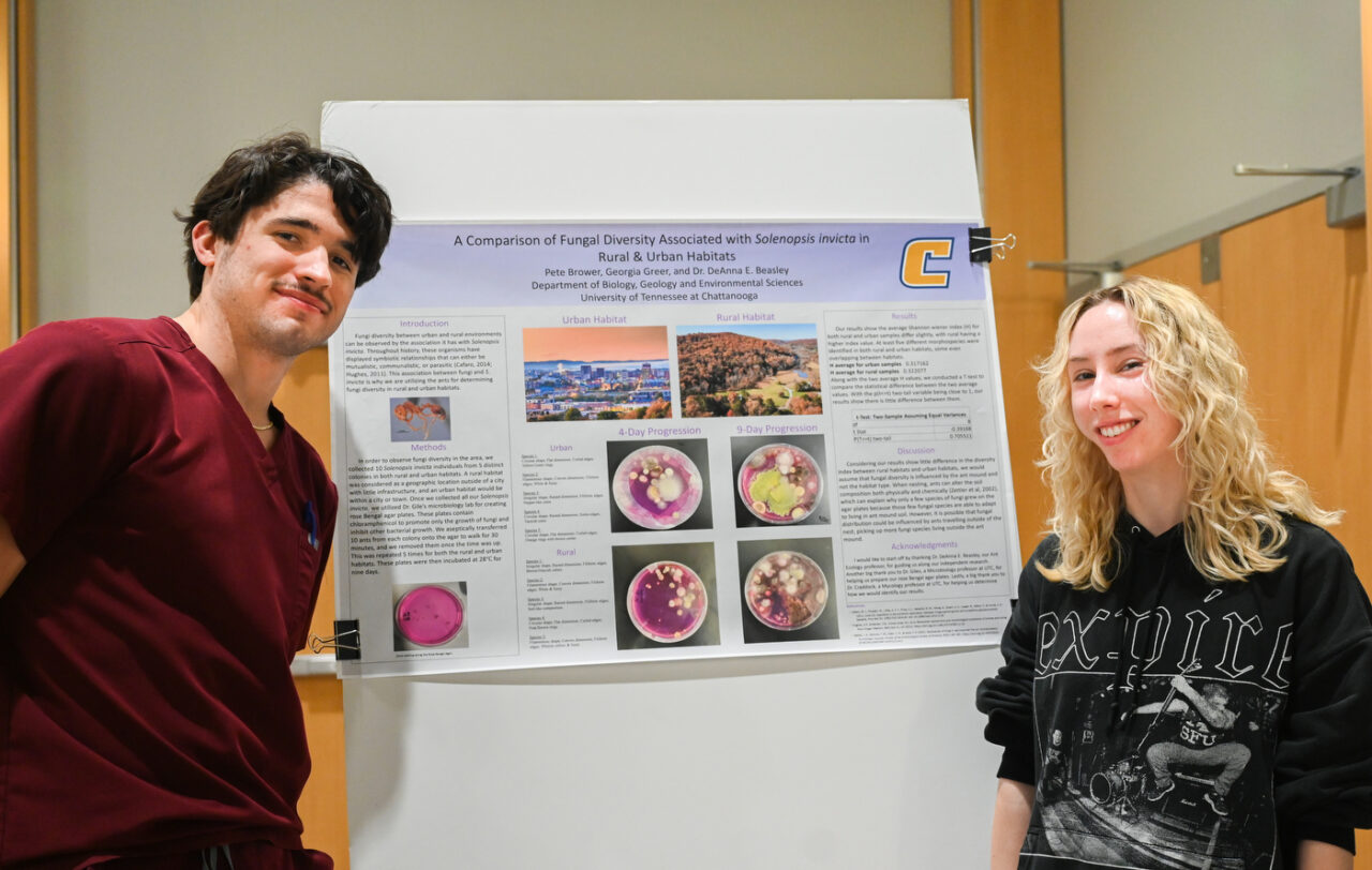 On Dec. 5, University of Tennessee at Chattanooga fourth-year students enrolled in the ant ecology course taught by UC Foundation Assistant Professor DeAnna Beasley, the meiofaunal biodiversity course taught by Assistant Professor Francesca Leasi or the animal physiology course taught by Professor Loren Hayes gathered in the University Center Tennessee Room to present posters of their research.