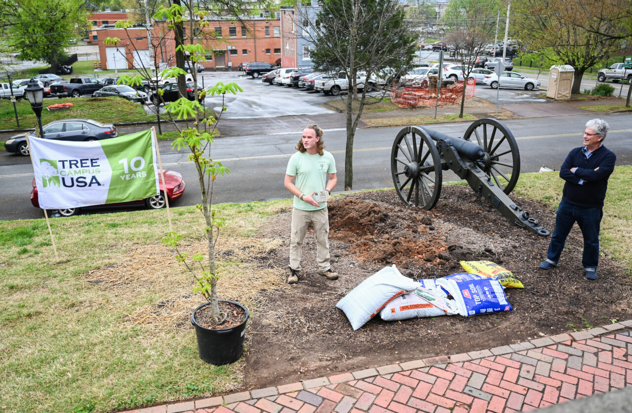 In honor of the decade-long run as a Tree Campus USA, a European horse chestnut tree—a species suggested by Dr. Hill Craddock for the occasion—was planted outside Patten House on Friday, March 31.