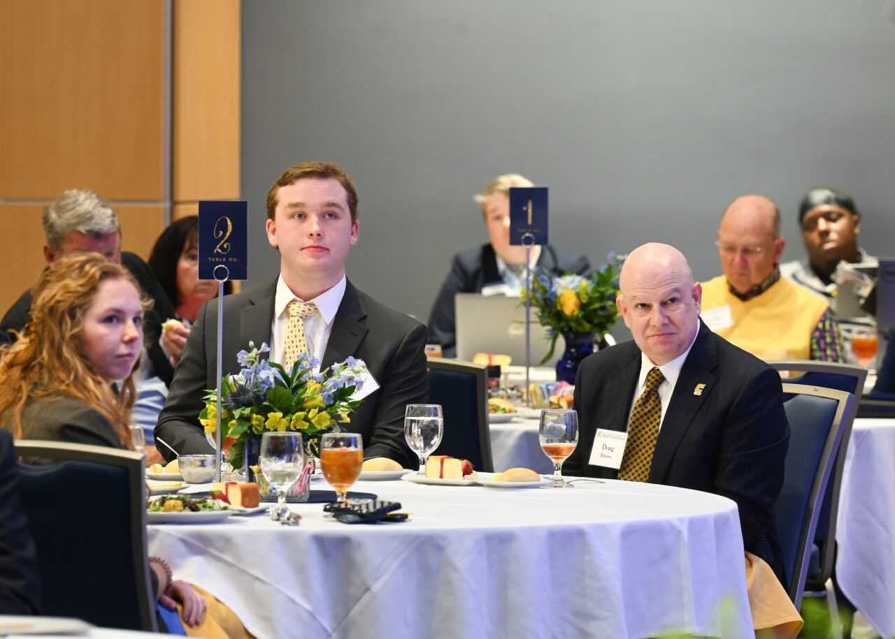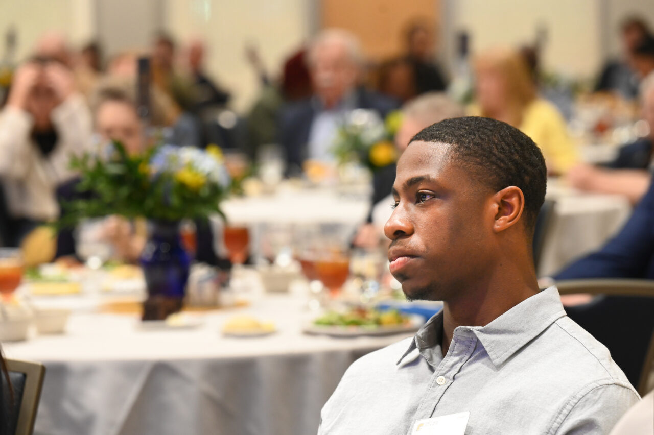 Luncheon attendees were then treated to a video featuring five student scholarship recipients from across campus—Reuben Lowery, Jannat Saeed, Justin Strauss, Charlie Jeffries and Malik Norwood.