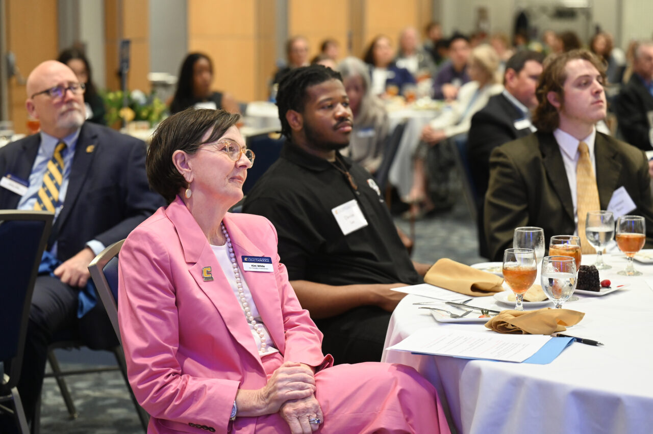 “We’re here today because of each one of you,” said Kim White, vice chancellor for advancement and executive director of the University of Chattanooga Foundation. The Foundation awards over 1,700 scholarships and more than 40 professorships.
