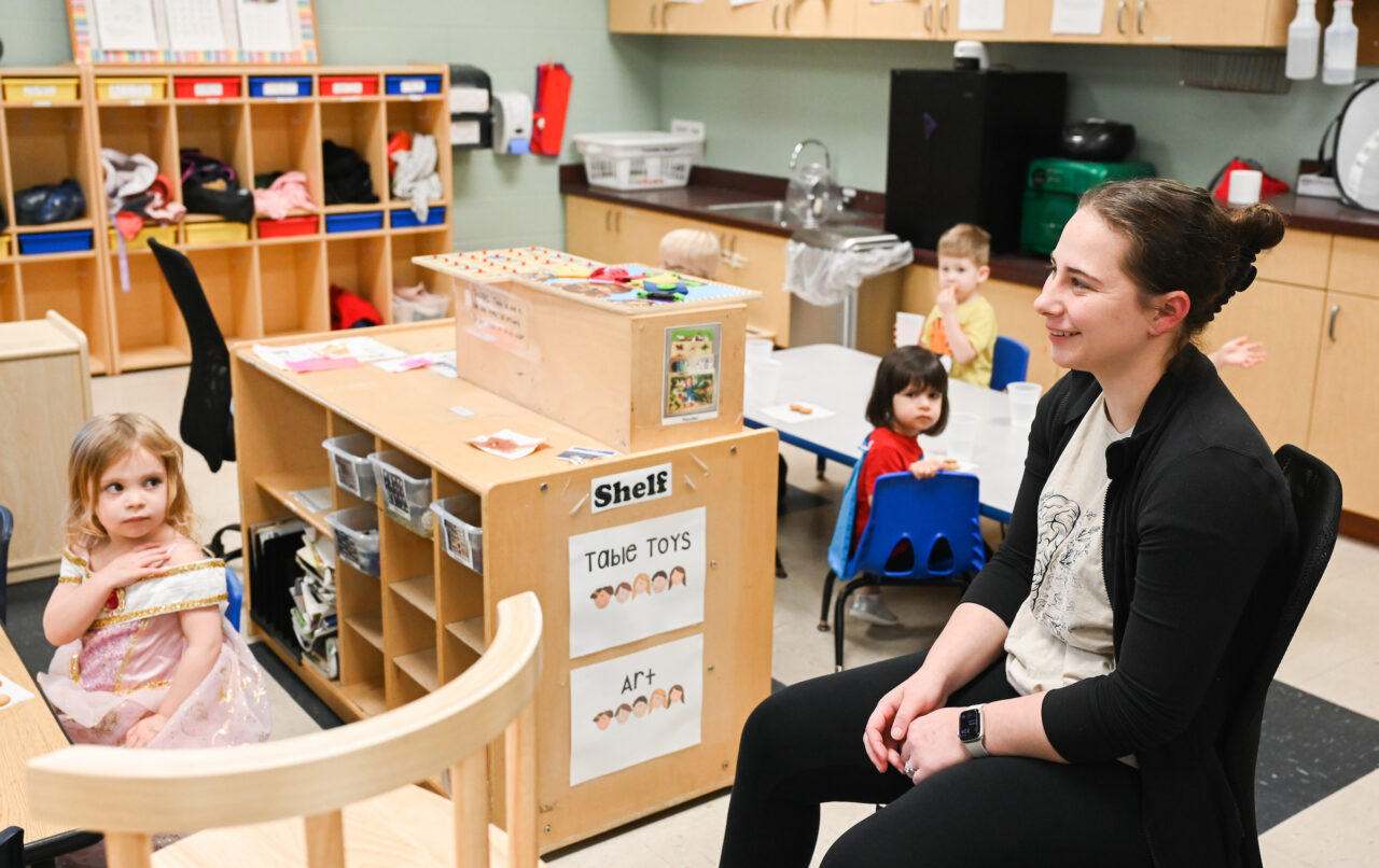 Elementary education major Macaria Hudson, a graduate of the UTC Institute of Teaching and Learning at Tyner Academy, is a student worker in the UTC Children’s Center. Photo by Angela Foster.