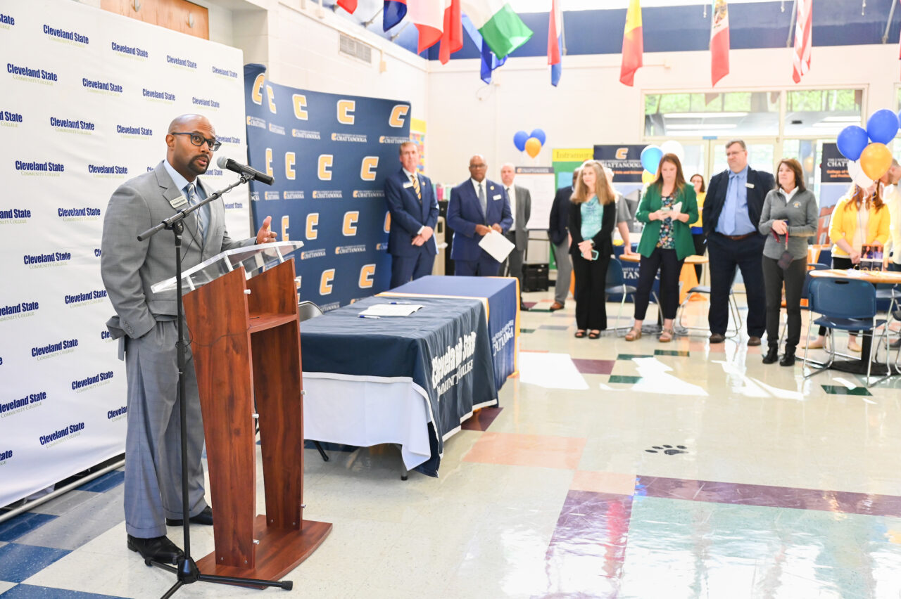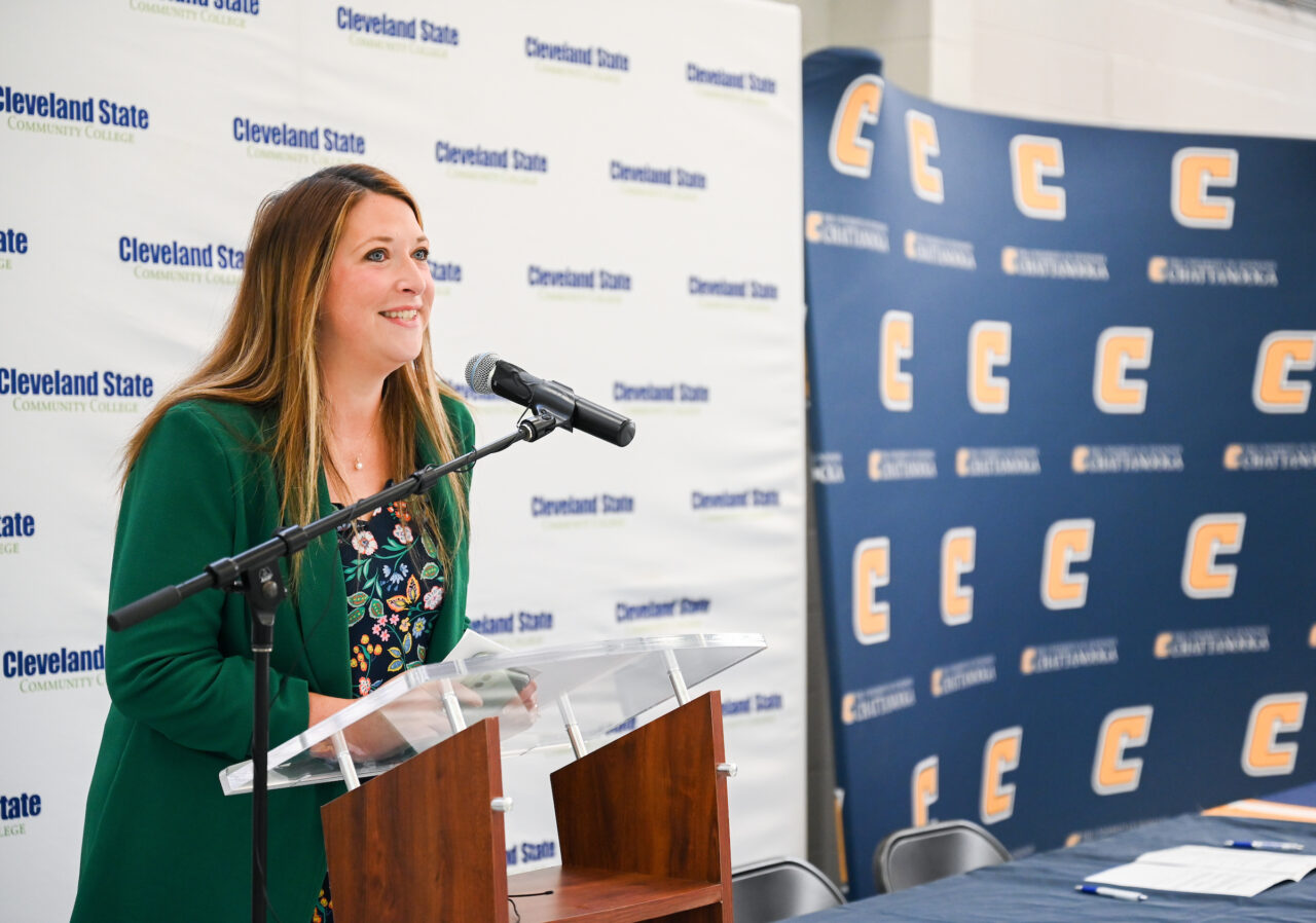 Signing ceremony speakers included Cleveland State Vice President for Academic Affairs Corey Campbell, Cleveland State Dean of Enrollment Management Cate Green, Cleveland State Vice President of Student Services Michael Stokes and UTC Vice Chancellor for Enrollment Management and Student Affairs Yancy Freeman.