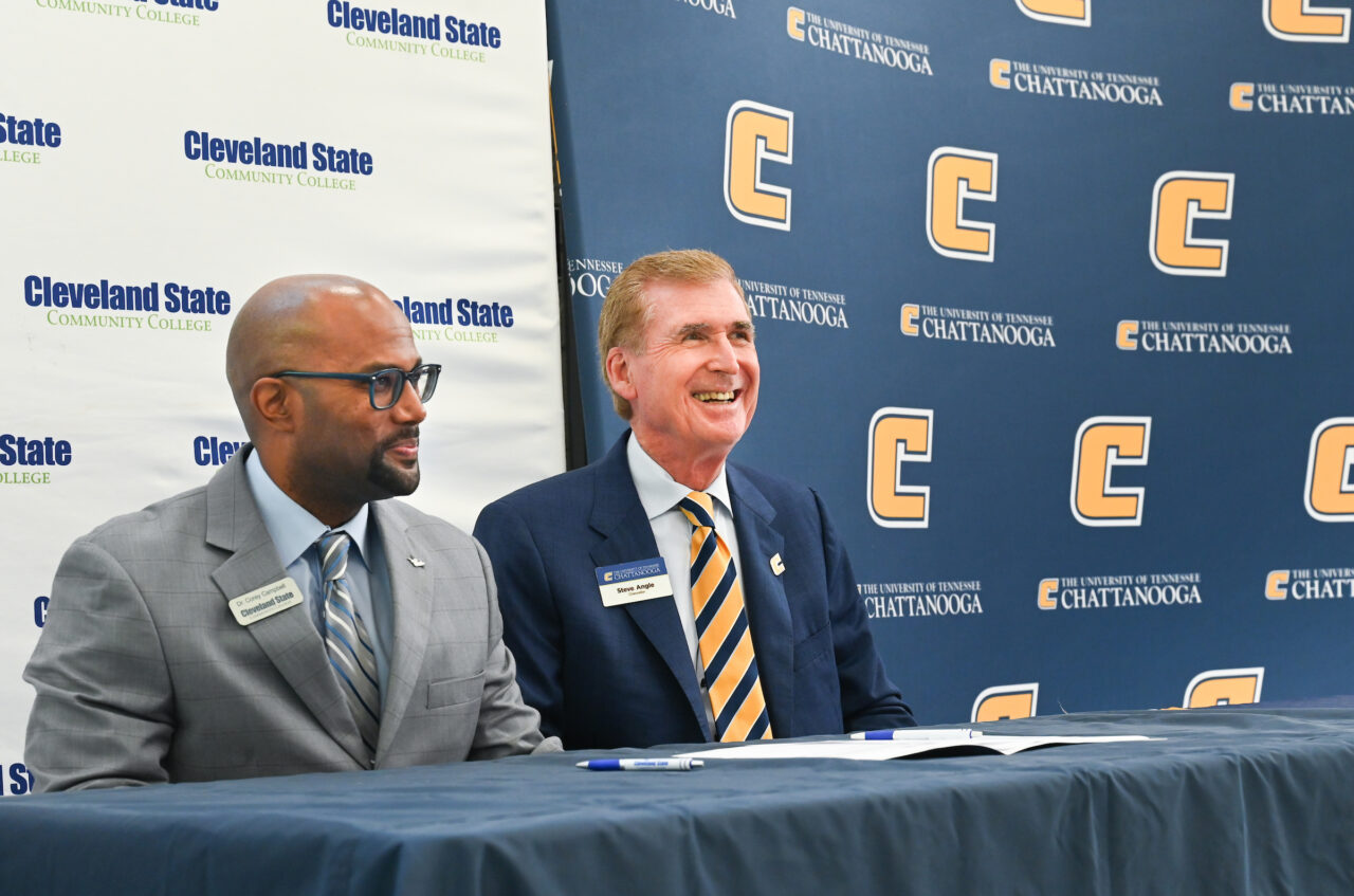 “What a pleasure to be able to recommit to this new admission agreement with Cleveland State Community College to help their students transition to the University of Tennessee at Chattanooga,” UTC Chancellor Steven R. Angle said. “We can admit students as freshmen who come here with the Tennessee Promise program … they can get their two-year degree and then transfer to UTC in a seamless manner.