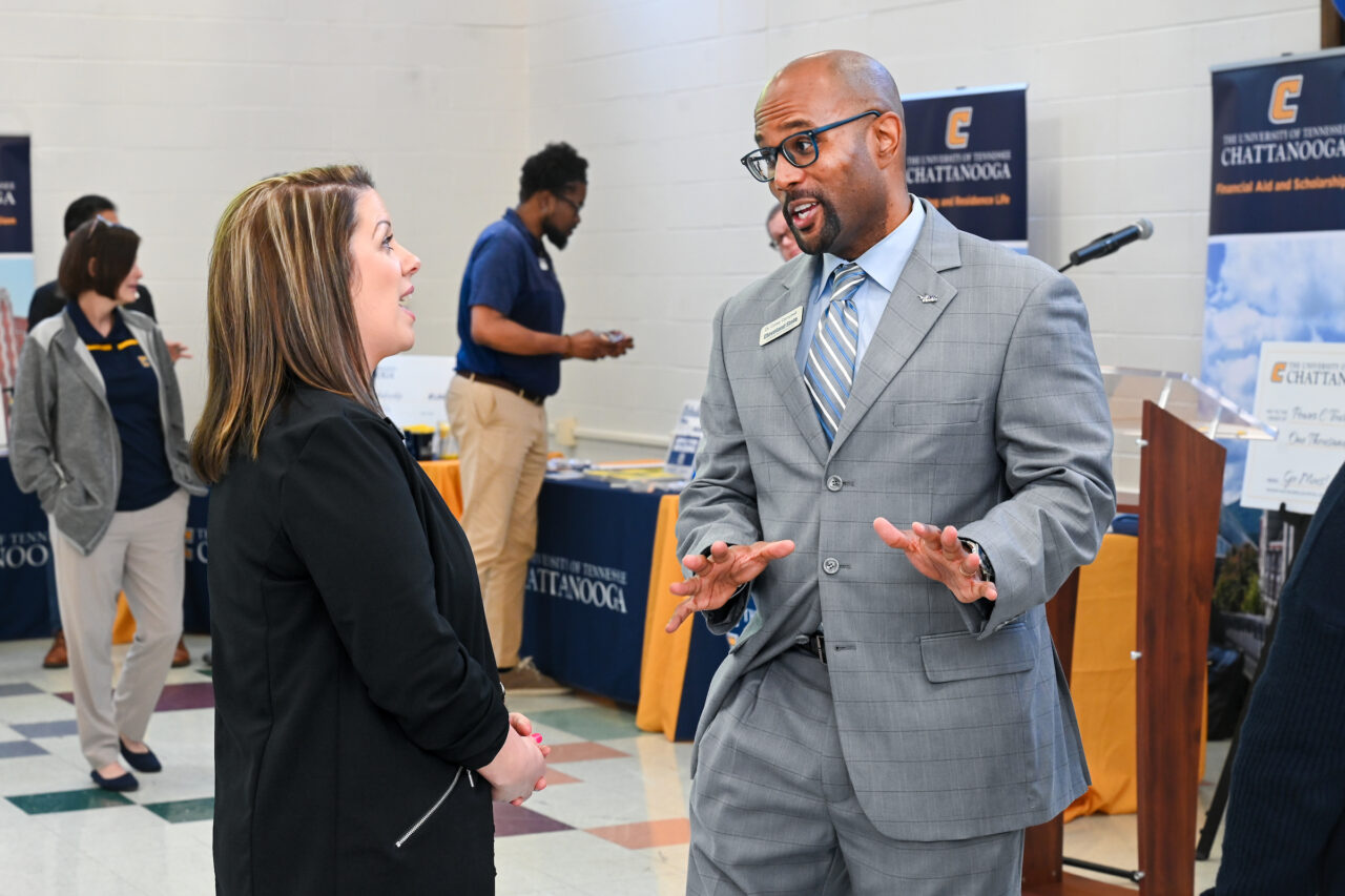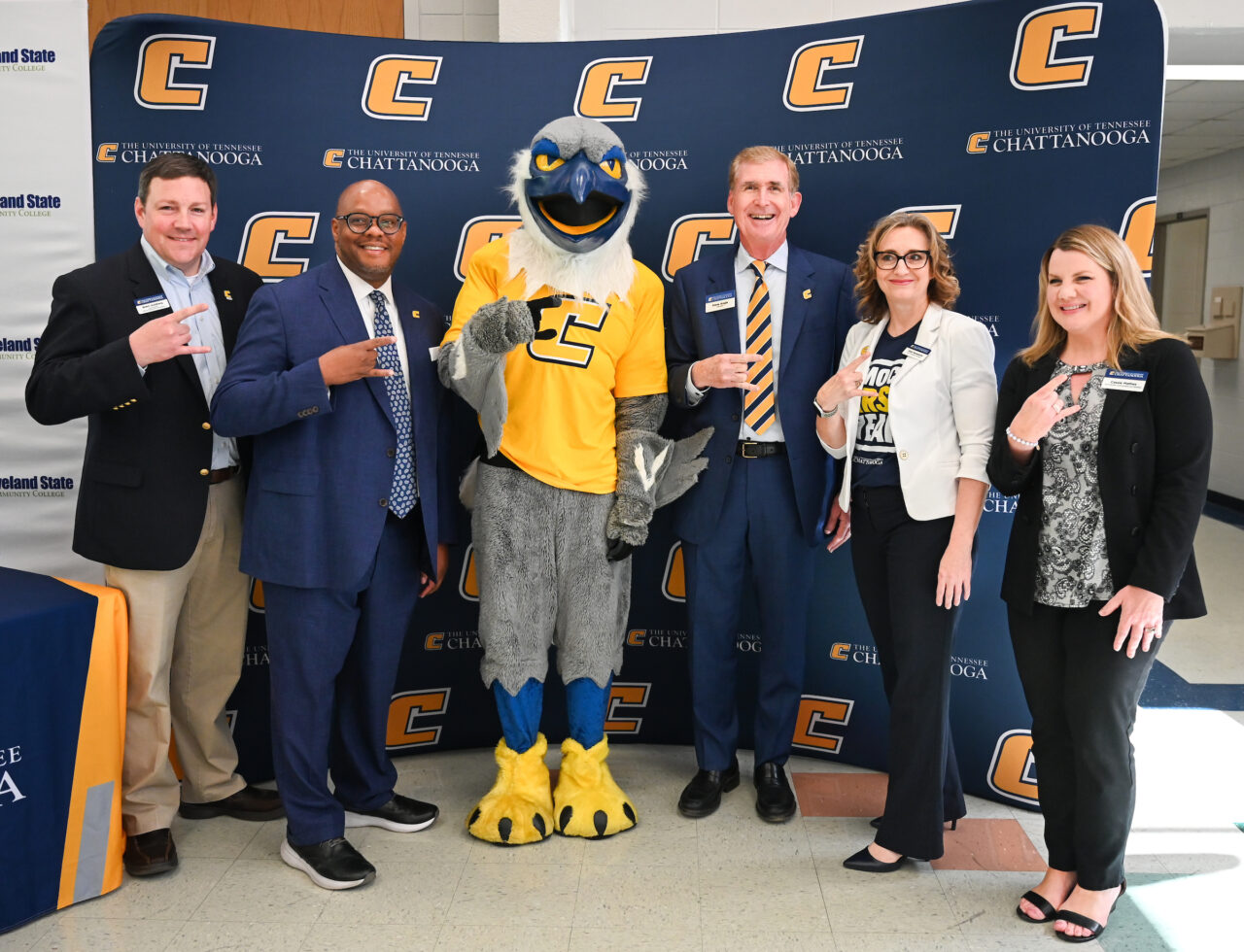 Representatives from UTC’s academic colleges, student services and the executive leadership team—along with mascot Scrappy—were on hand to educate Cleveland State students, faculty and staff on the pathway created for transfer students upon completing associate degrees.