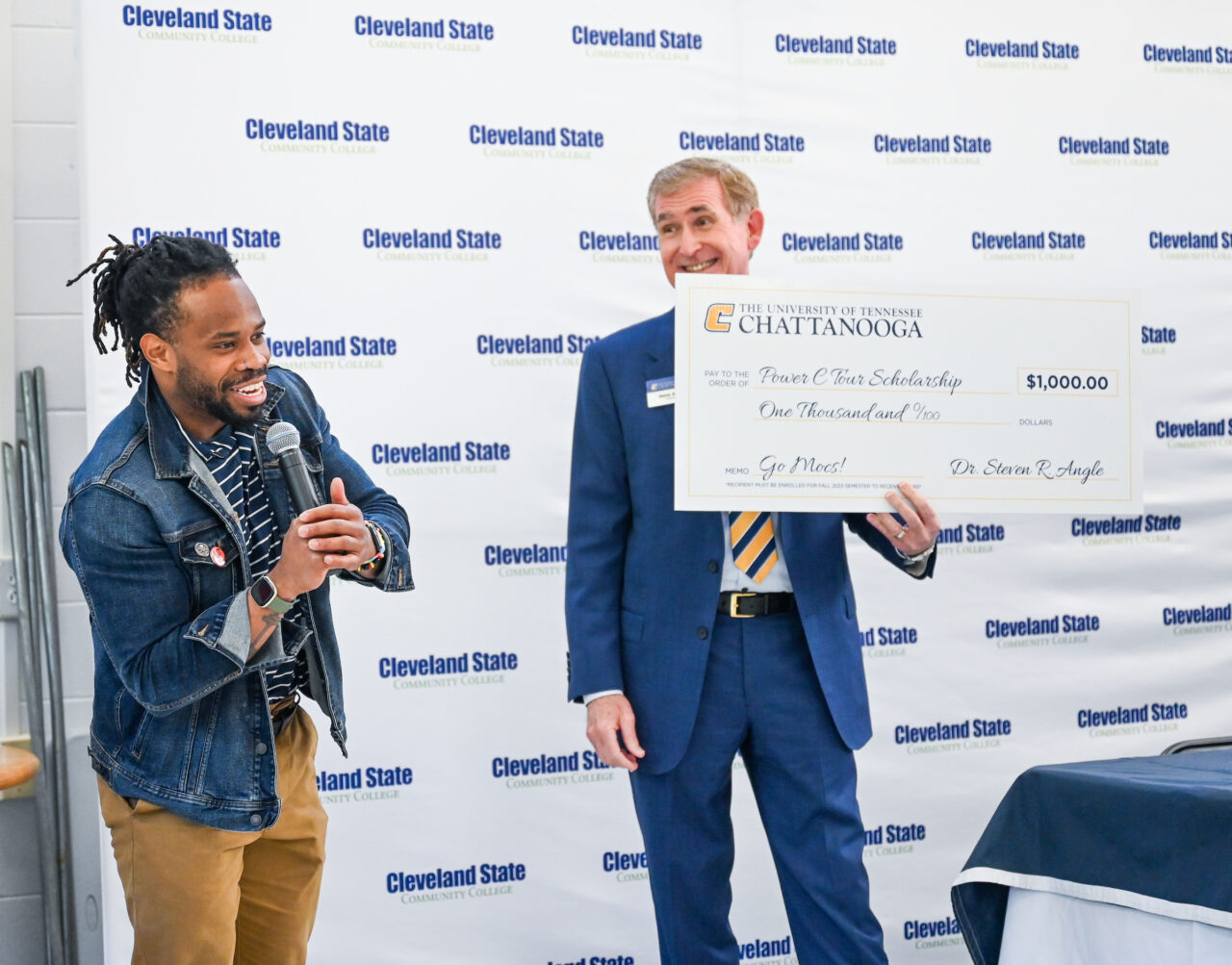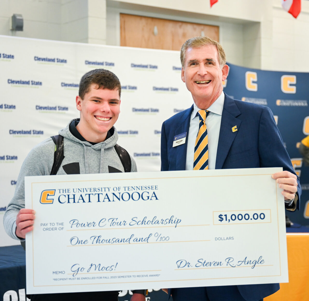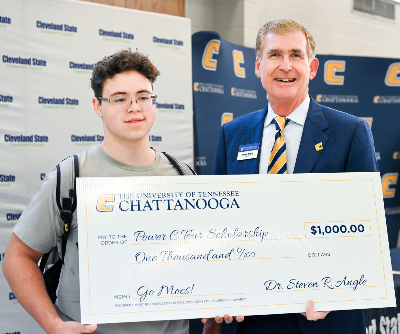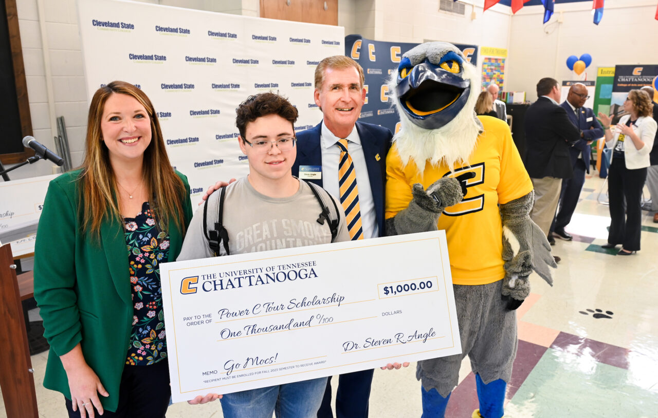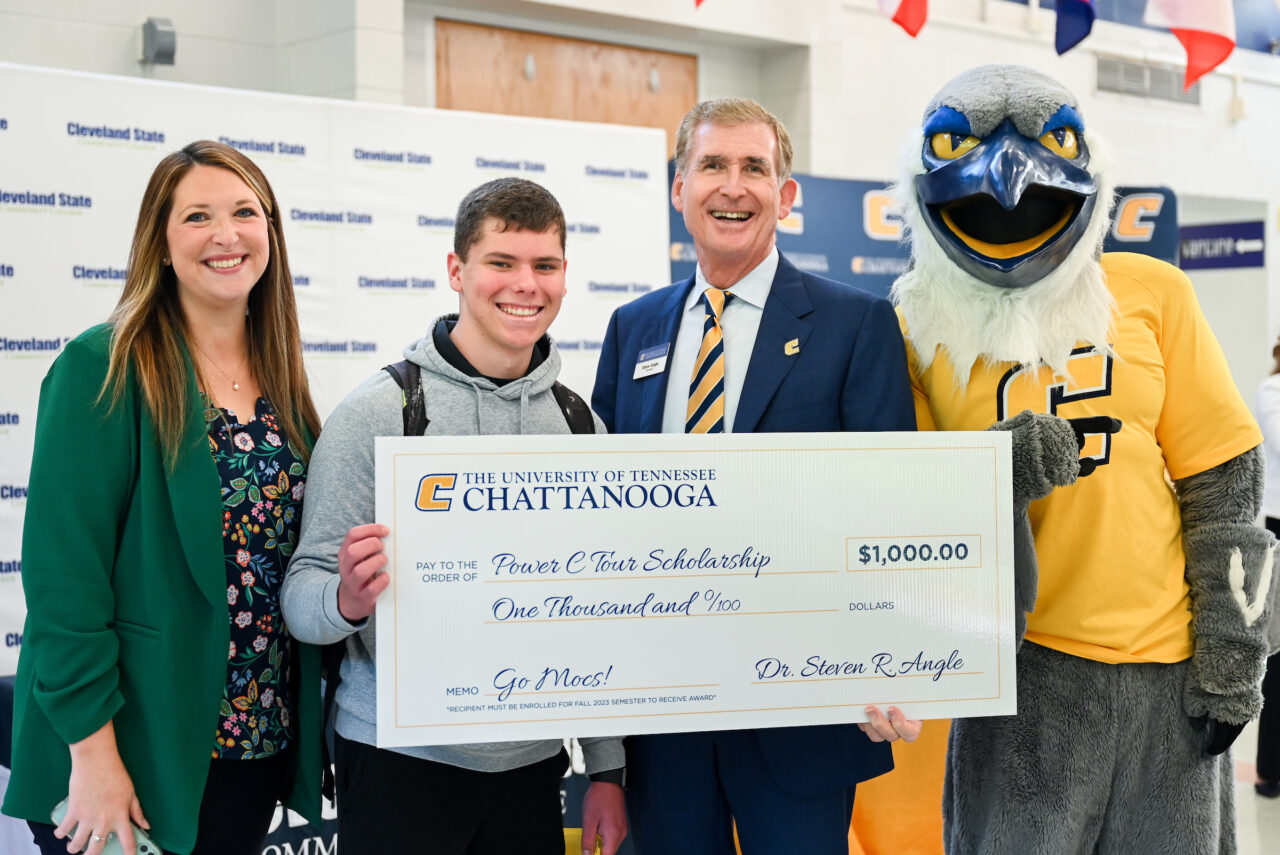 The event was highlighted by the awarding of $1,000 Power C scholarships to Jeremiah Centeno and Conner Wilkins, a pair of dual-enrollment Cleveland State students receiving associate degrees in May. Both Centeno and Wilkins will continue their education at UTC in the fall.