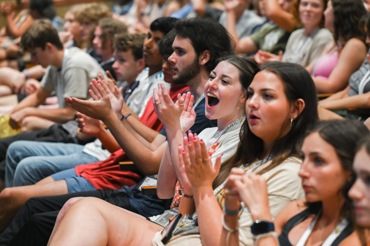 “Cheers and Chants” is when orientation leaders teach students the UTC fight song and some traditional chants that are part of Mocs home football and basketball games.