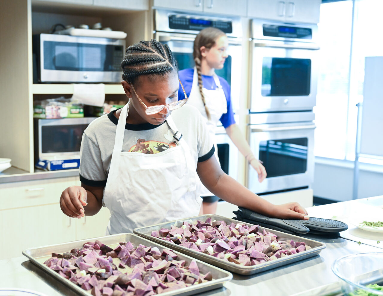 With Barbosa’s Teaching and Learning Garden, they learned about plant irrigation and used the potatoes they harvested for a fresh-cooked meal they got to take home. They chose their own portions of certain ingredients and seasonings, using their lessons in nutrition to inform their decisions and lessons in math to add fractions.