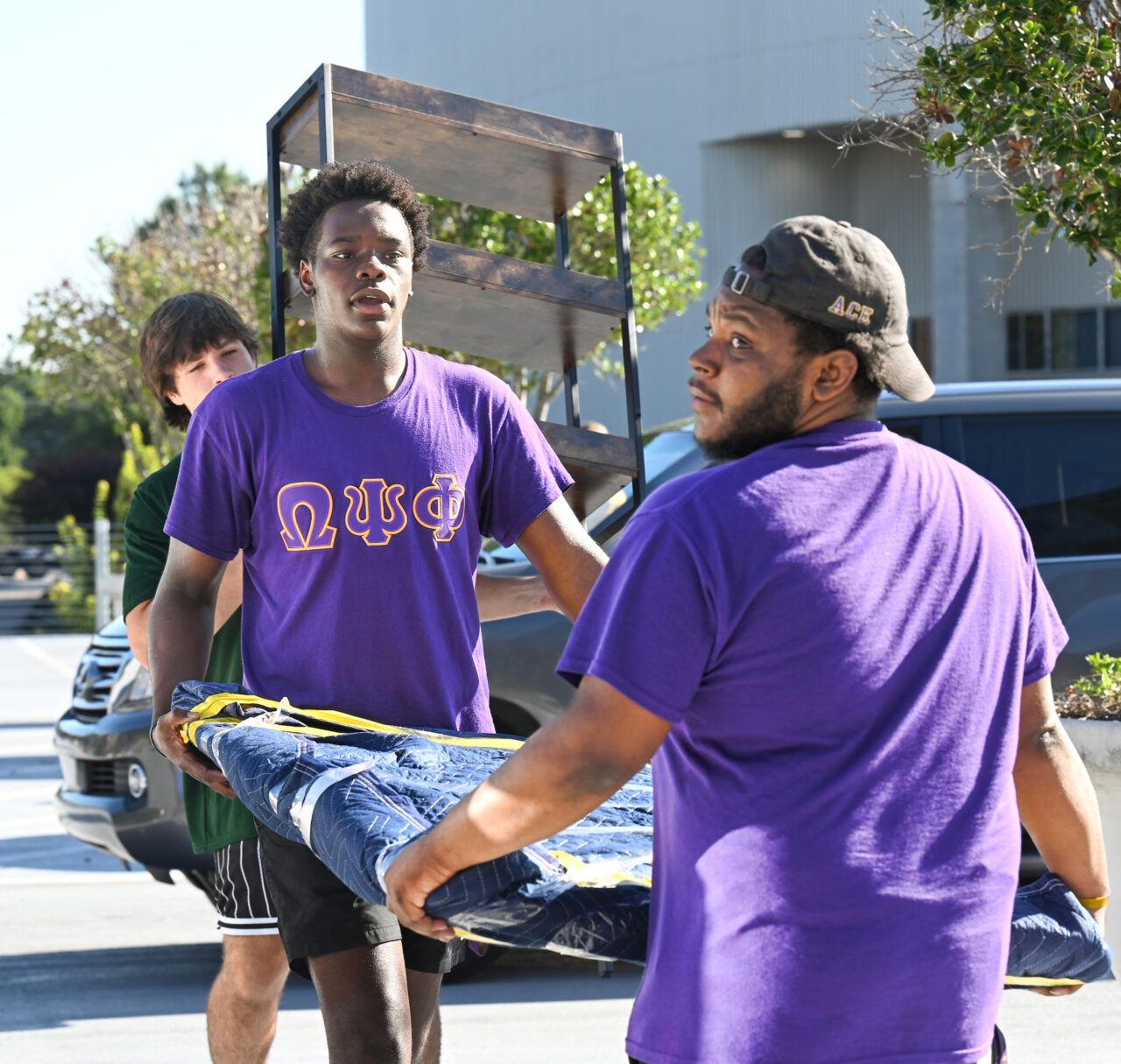 In one case, a student moving into UCF loaded four carts with belongings, then had to come back and load one more. At West Campus Housing, a 20-foot line of items destined for a student’s room sat ready to be loaded in.