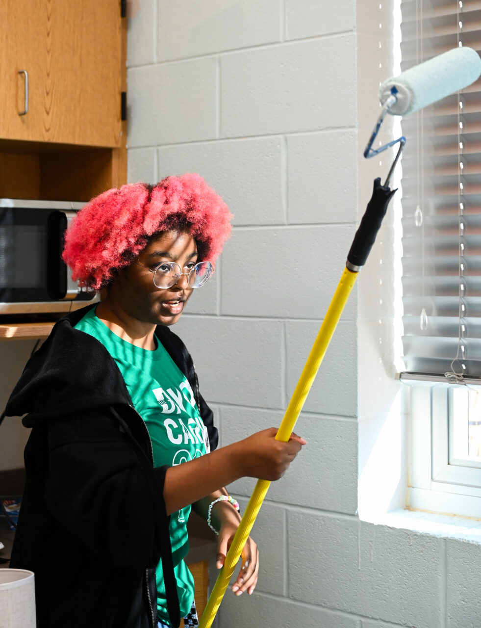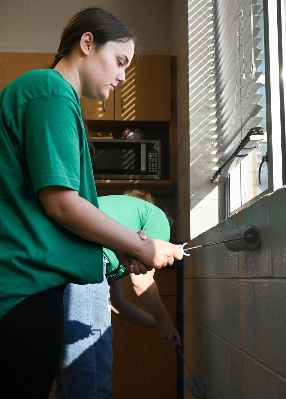 UTC students went to Hixson Middle, Brown Middle School in Harrison and the Chattanooga Zoo to lend a hand as part of the Day of Caring. Vinson and four other students were painting teacher breakrooms at Hixson Middle.