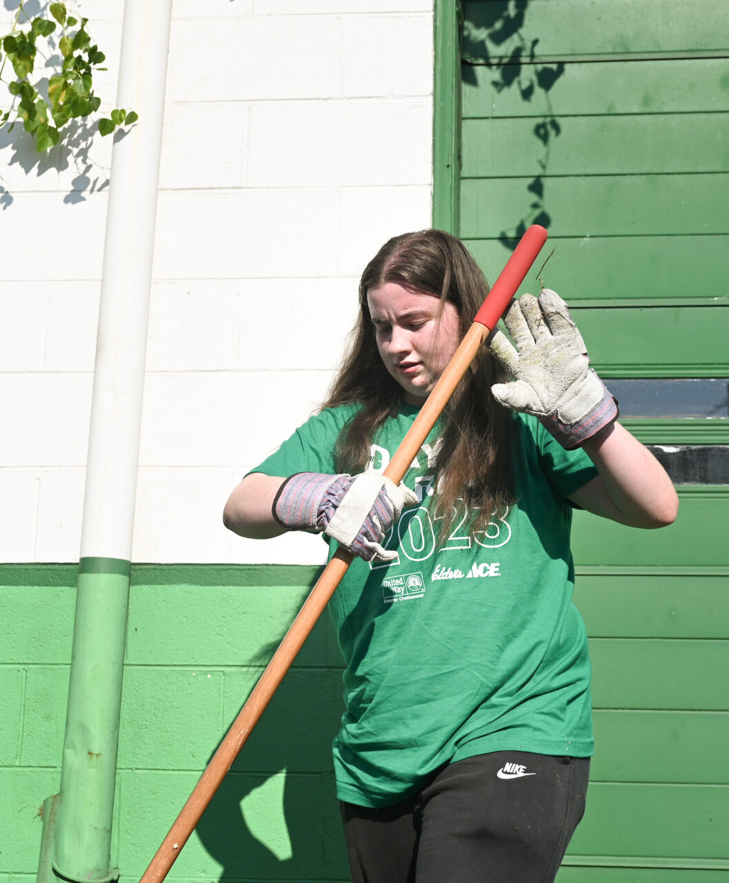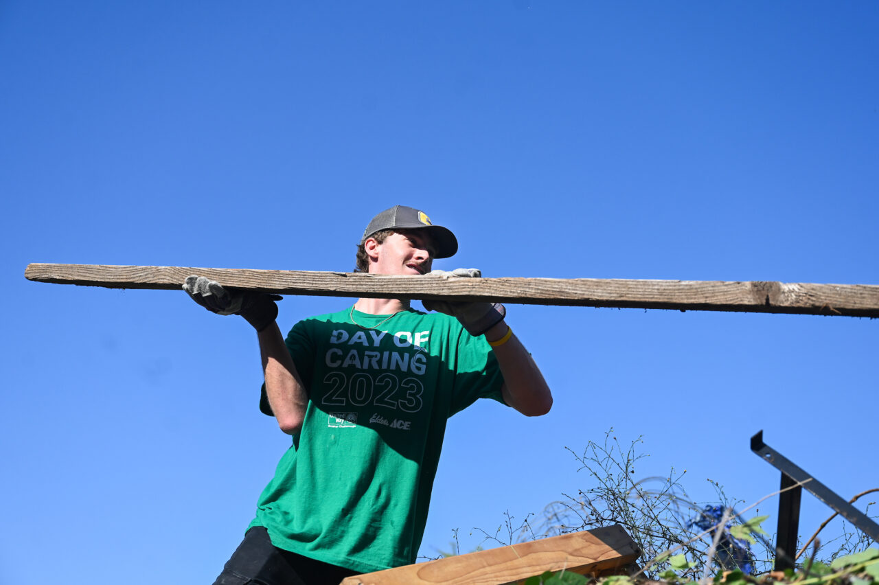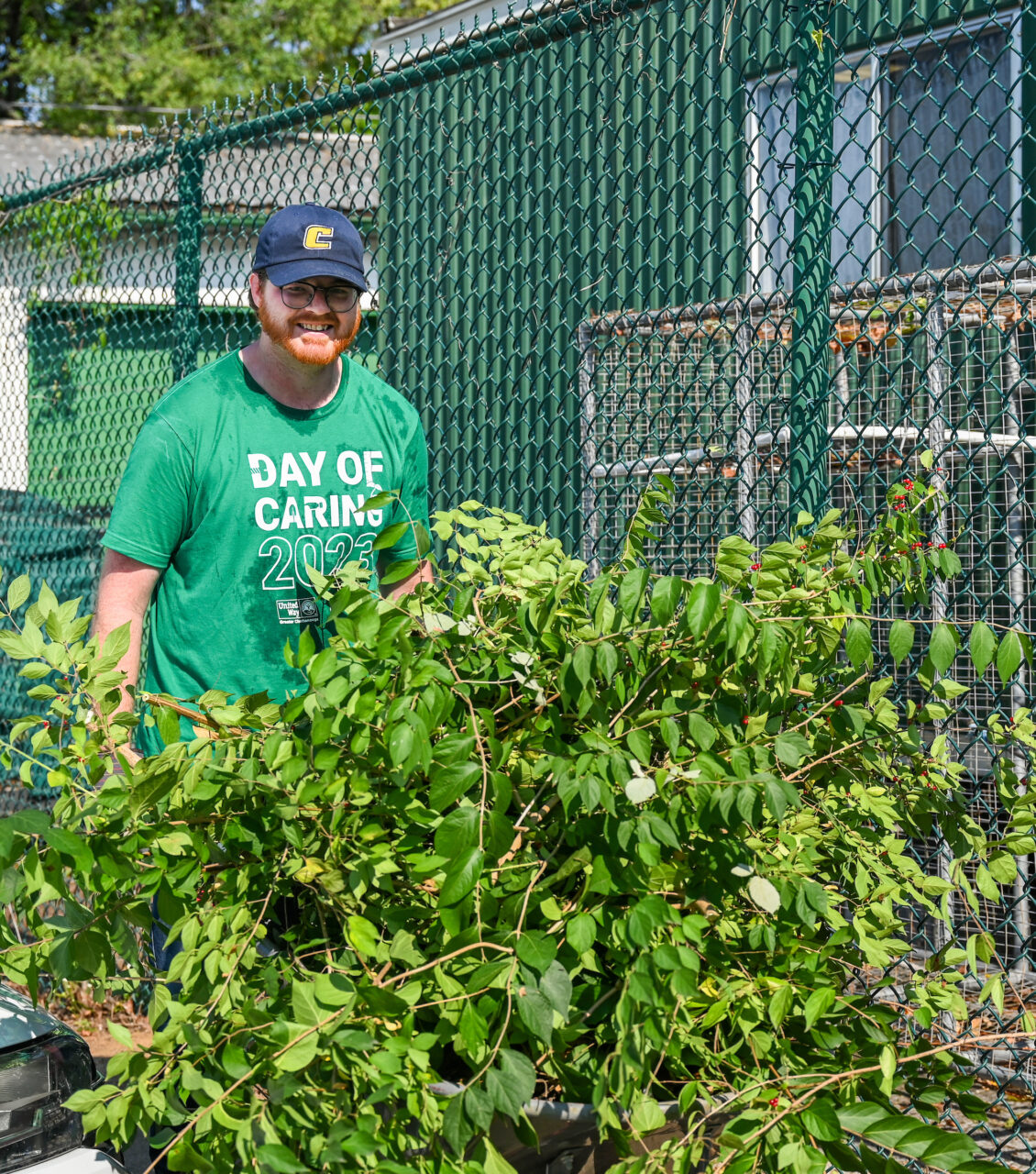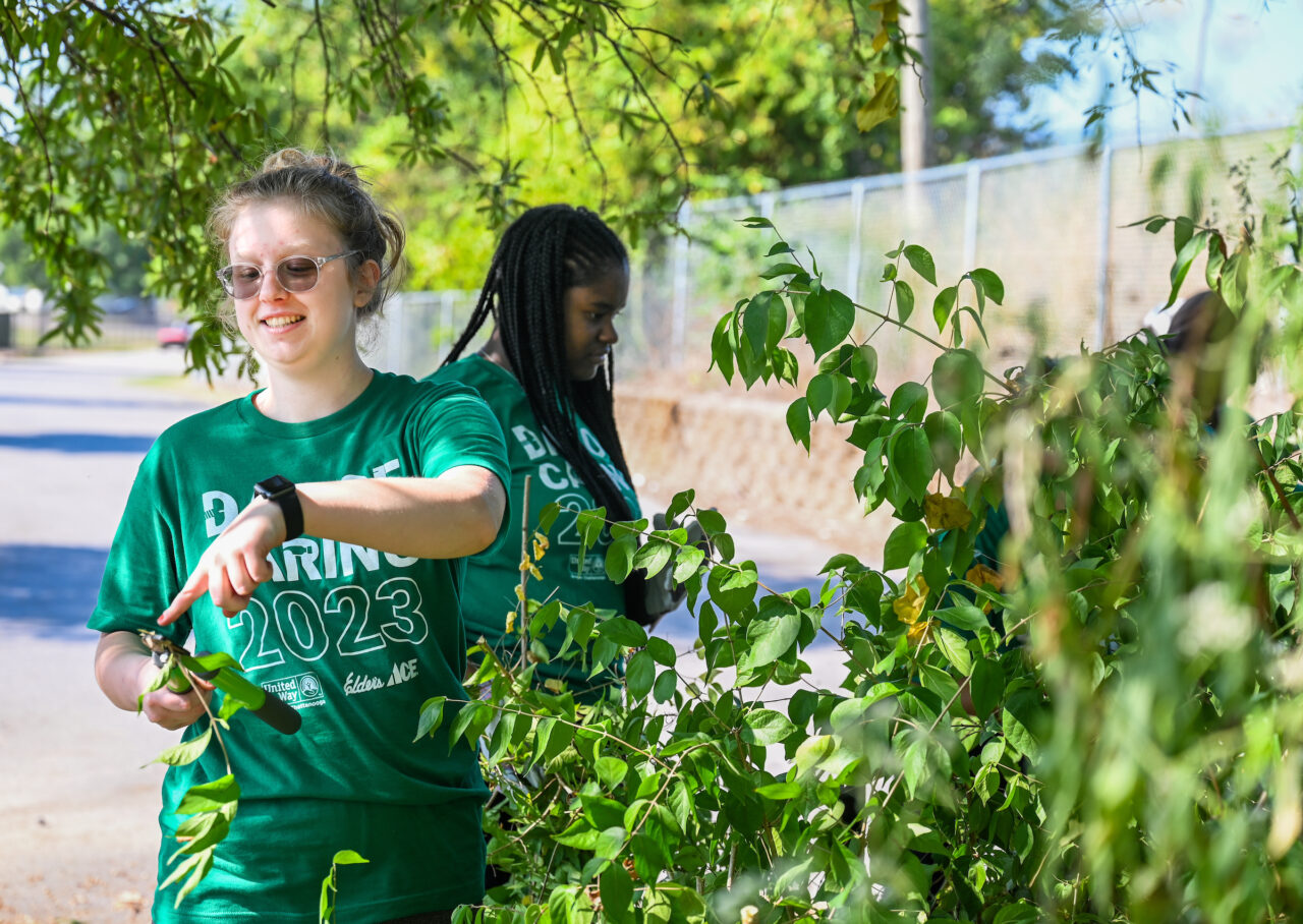 Vinson was one of 21 UTC students spread across Hamilton County on Friday, Sept. 22, for the United Way of Greater Chattanooga’s Day of Caring. Among other jobs, the students volunteered to paint, clean up brush and dirt, chunk building scrap into dumpsters, spray weeds in school vegetable gardens and brush spiderwebs off ceilings.