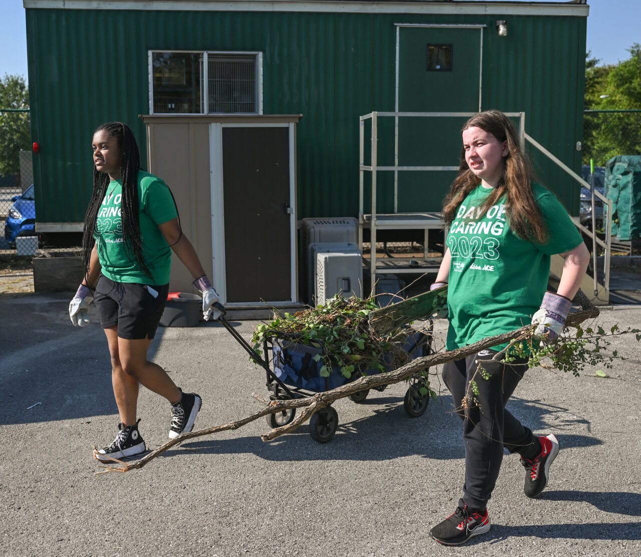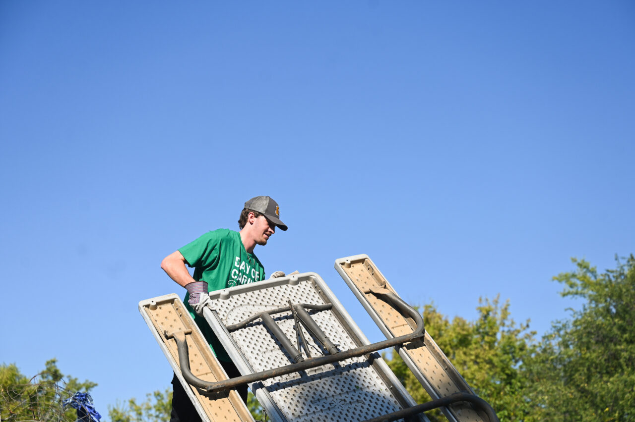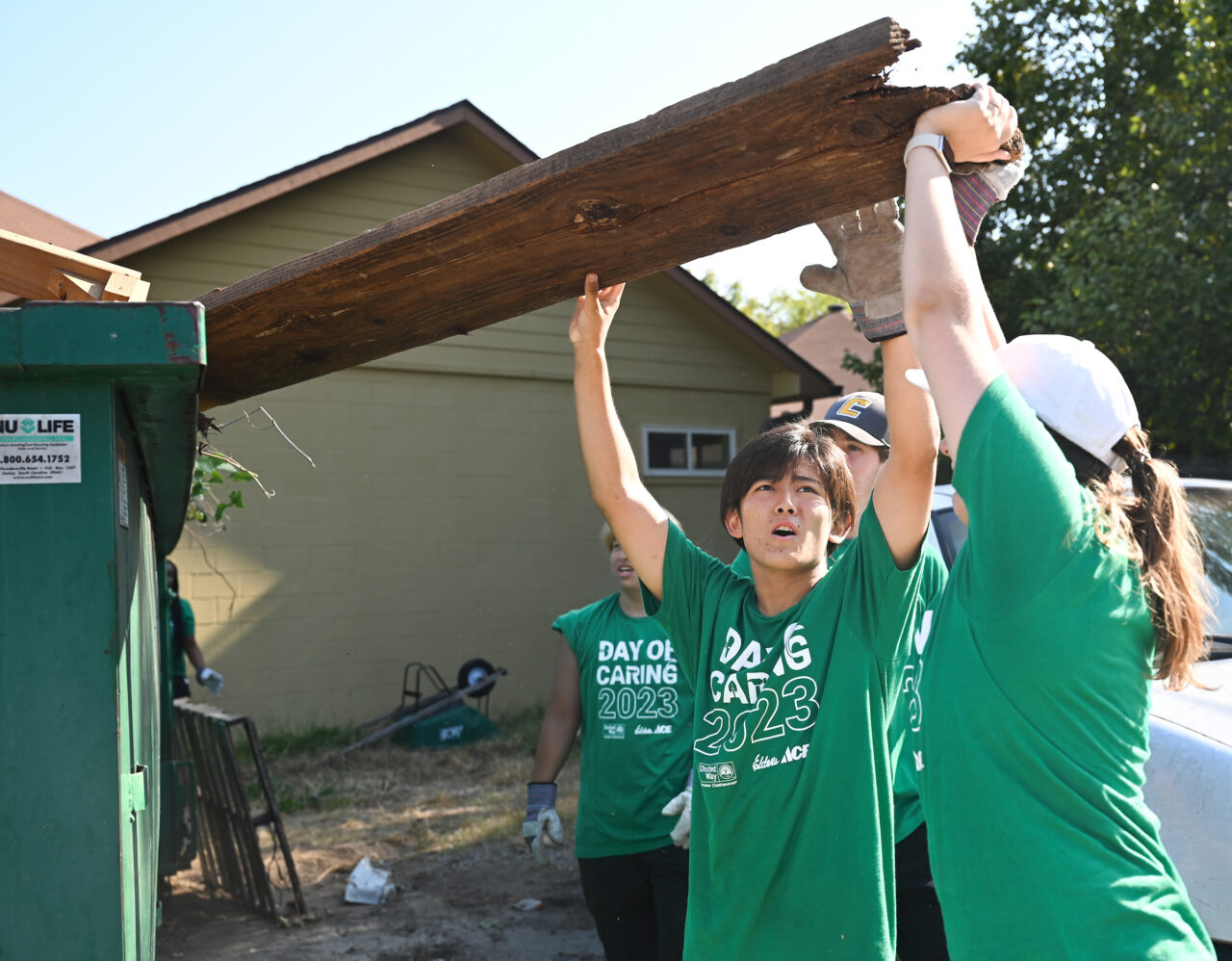 Vinson was one of 21 UTC students spread across Hamilton County on Friday, Sept. 22, for the United Way of Greater Chattanooga’s Day of Caring. Among other jobs, the students volunteered to paint, clean up brush and dirt, chunk building scrap into dumpsters, spray weeds in school vegetable gardens and brush spiderwebs off ceilings.