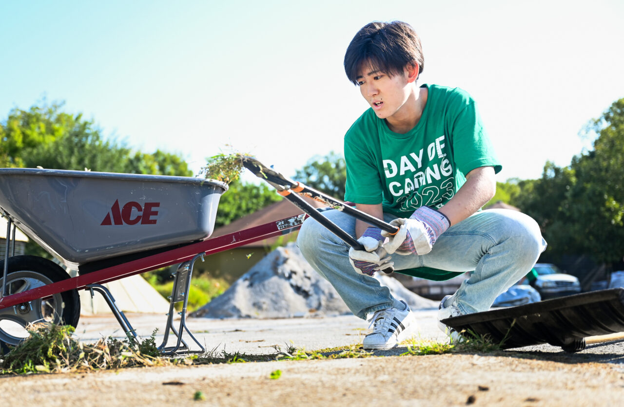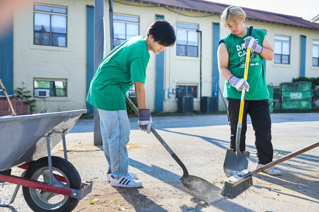 At Chattanooga Zoo, Kosuke Veno and Keita Murayama—both freshmen from Tokyo, Japan, majoring in communication—spent the morning loading branches and vines into wheelbarrows and pulling kudzu off a fence behind the Education Center and next to a loudly squawking cockatoo.