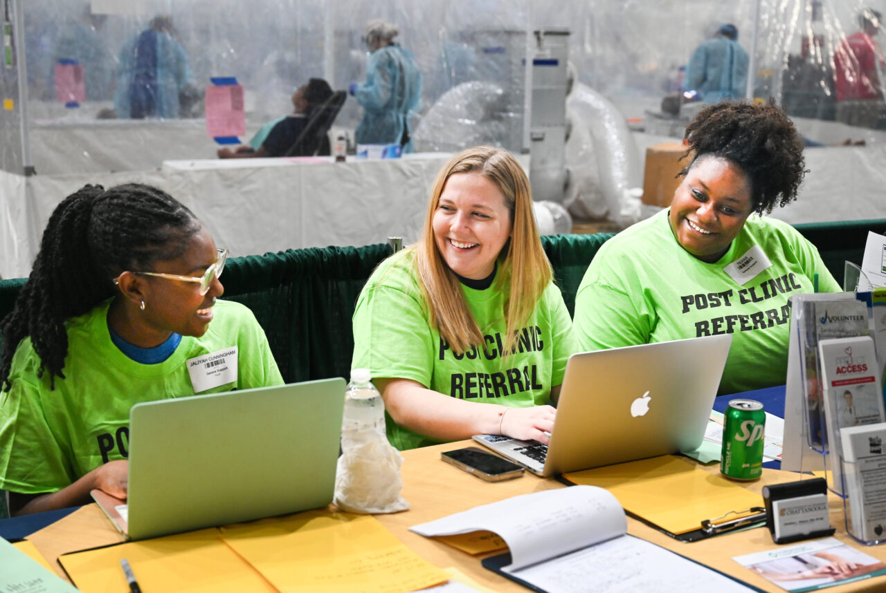 “Remote Area Medical Clinic is an international agency that provides pop-up clinics in areas across the country serving underserved individuals. They don’t ask any questions: your citizenship status, your background, your ability to pay, it’s at no charge,” said Social Work Associate Lecturer and Clinical Instructor Mary Andrews—who coordinated UTC’s efforts for this year’s RAM clinic.