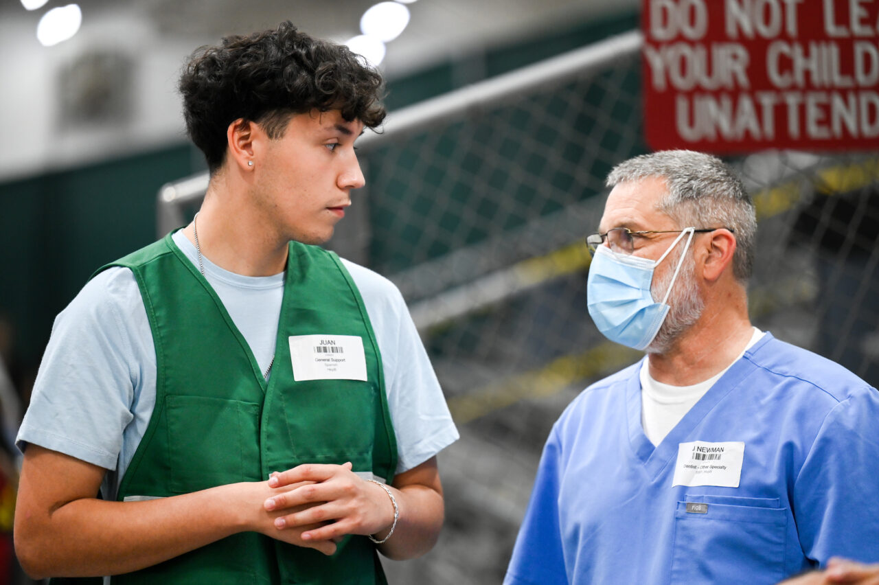Acuna, who helped check in patients as they entered the facility, said she was interested in emergency room medicine—but was also thinking about rural medicine “so that I can provide care to low-income people or people that don’t have access to quality medical care.”