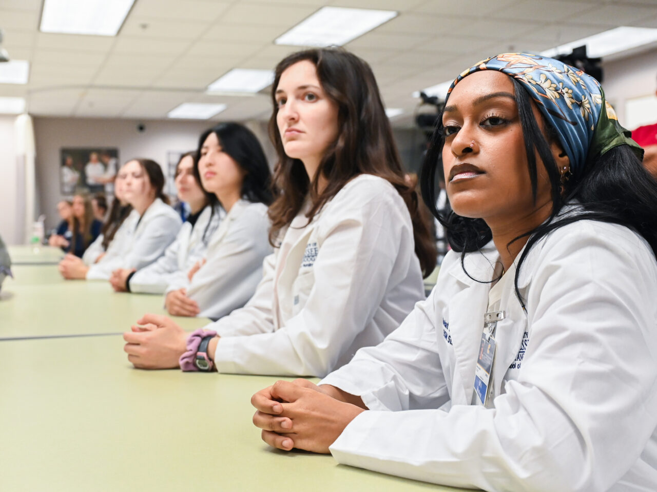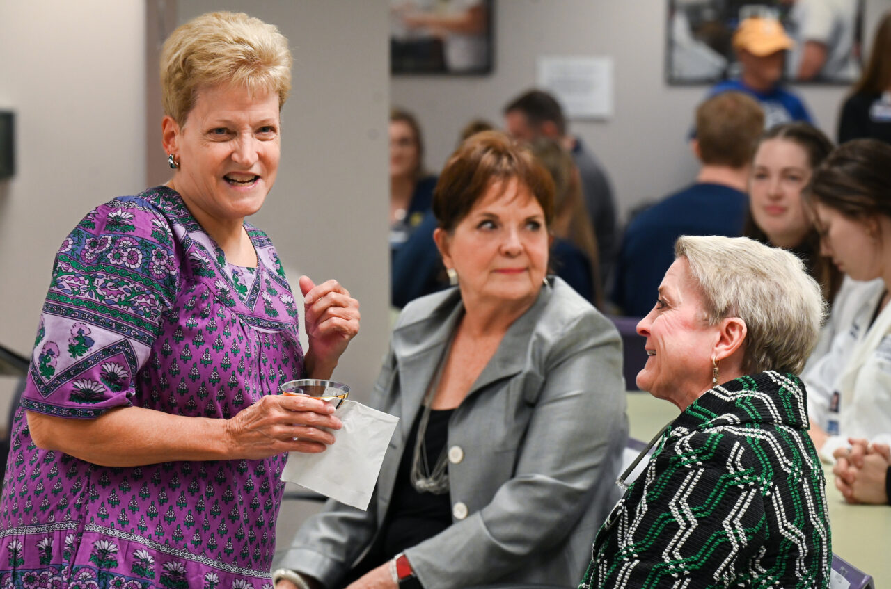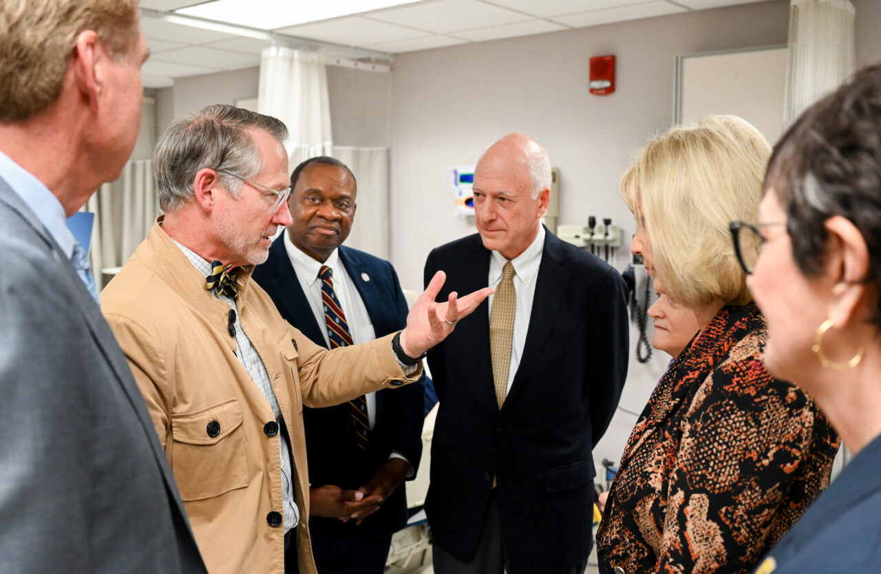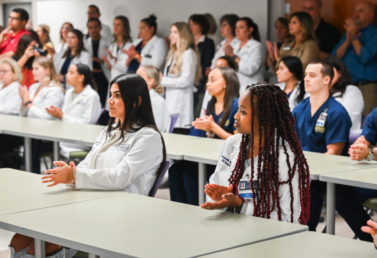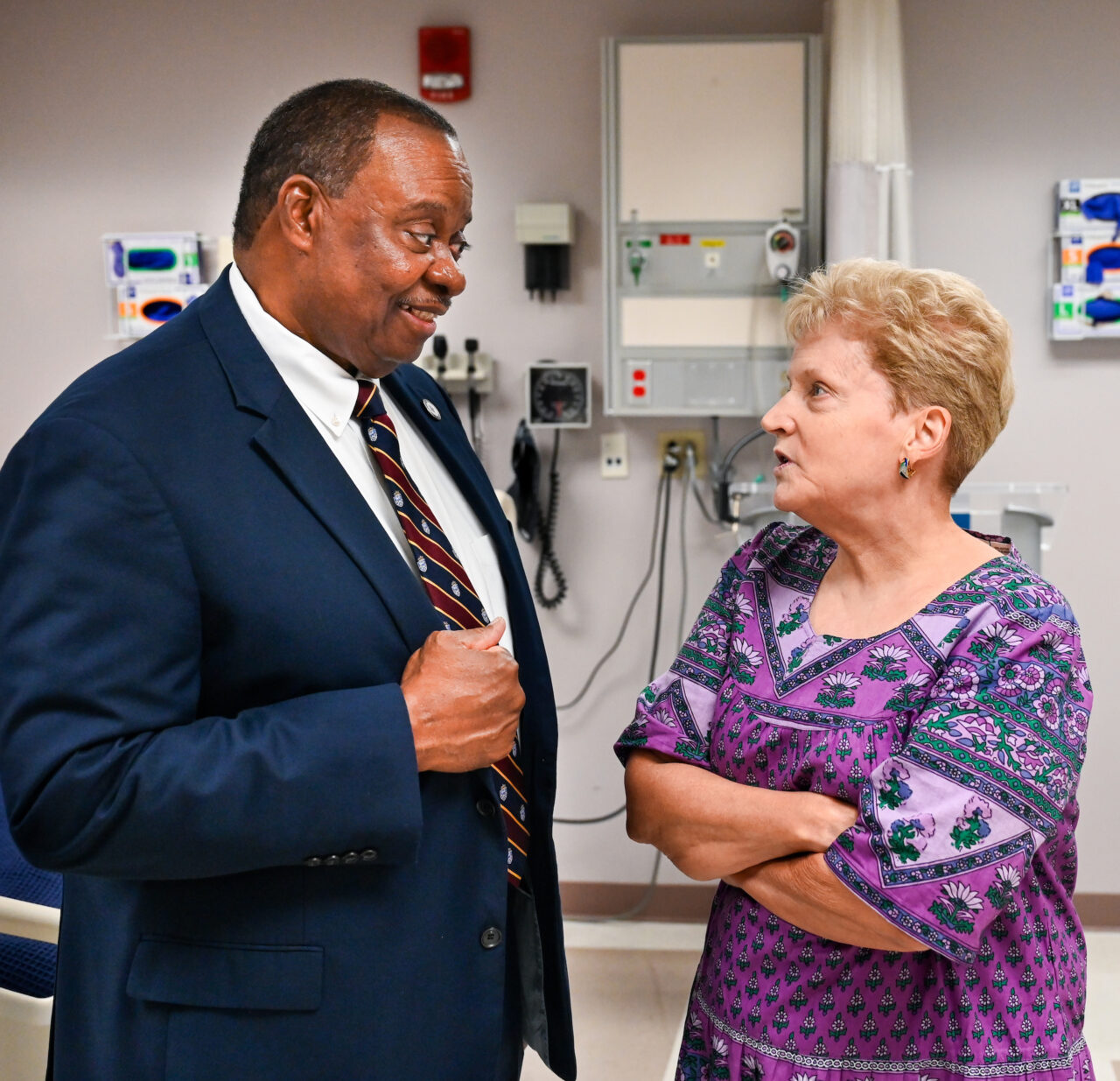 “The quality of the project was driven by the quality of our nursing program, and that’s a testament to the faculty and staff and students of the nursing program,” Angle said, turning to the many students and faculty among the standing-room-only crowd. “There would not have been a gift or support without all of you and what you do. Thank you for so many of the students, faculty and staff in our nursing program being here today. We salute you because you’re the ones responsible for this.”