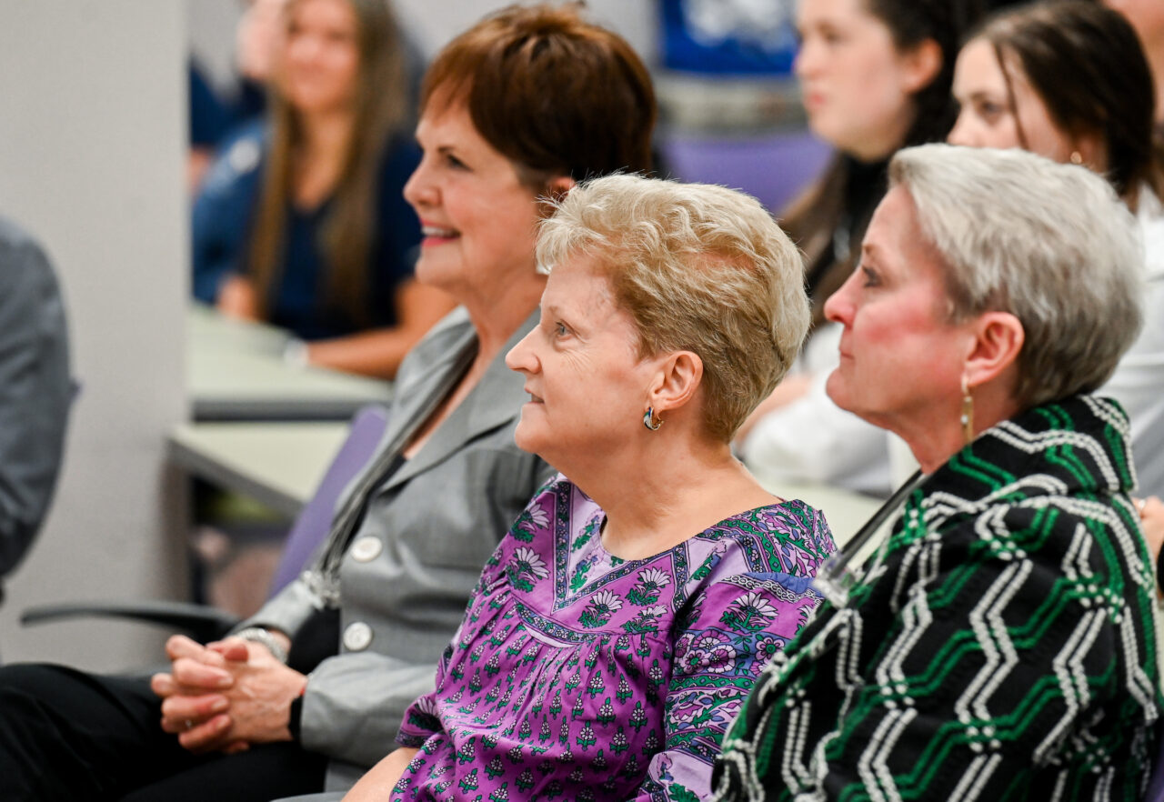 Peters spoke on behalf of the Kennedy Foundation, established in 1986. He cited the importance of health and education in gifts the foundation has supported through the years, including an emphasis on nursing. He said that support stems from World War II, when Jim Kennedy Jr.—then a combat soldier—was nursed back to health after being wounded in Europe.