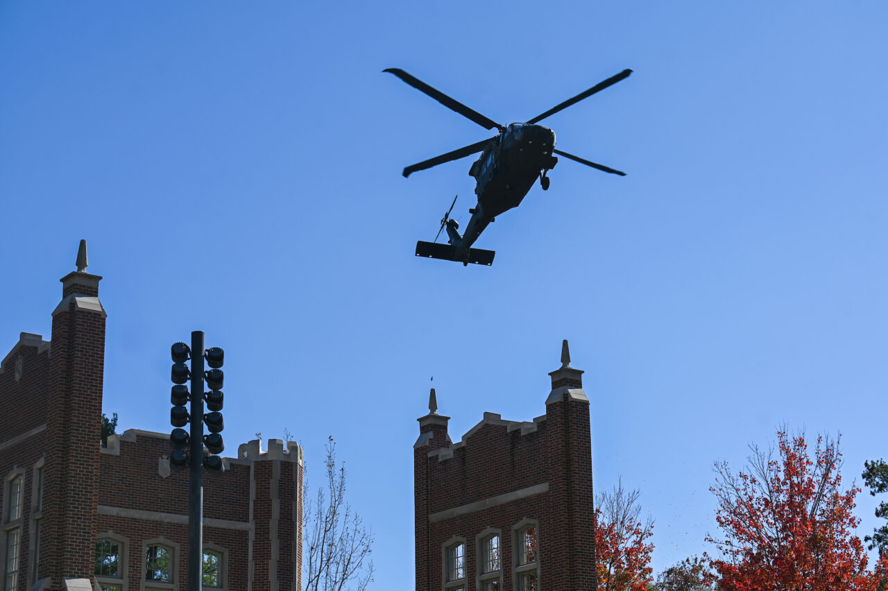 But he’d never returned to campus while piloting a U.S. Army helicopter.