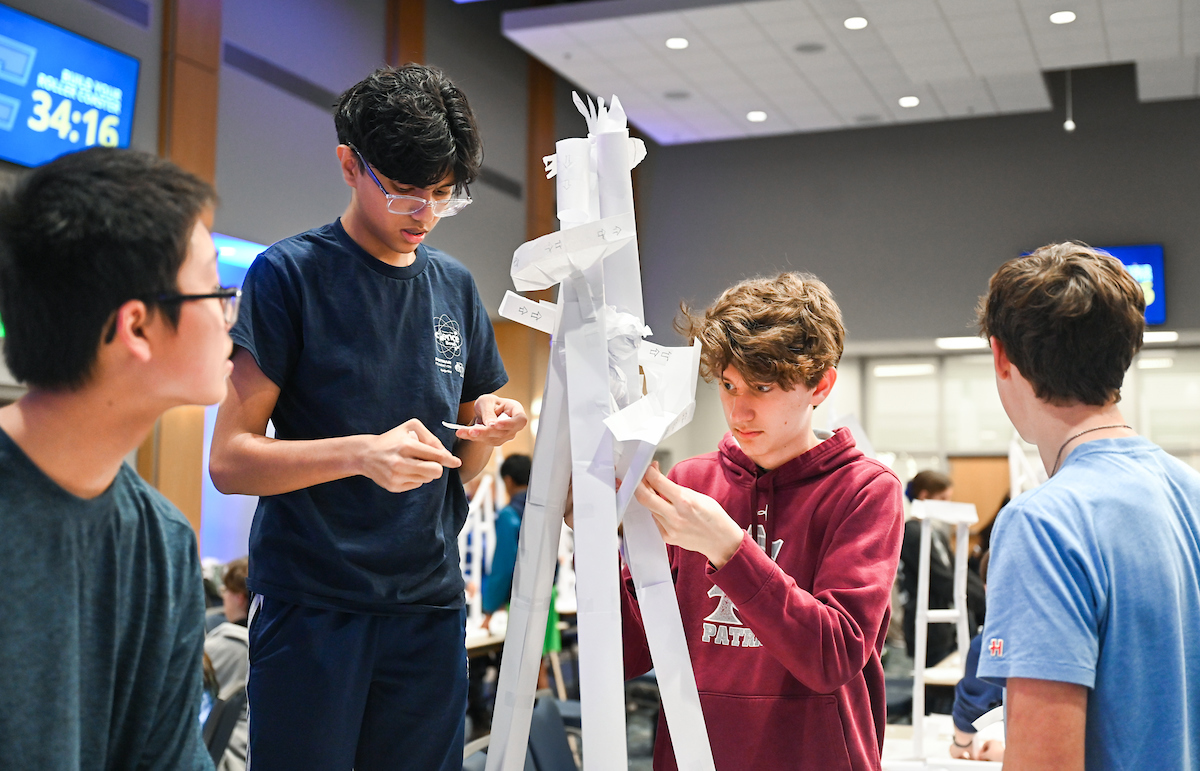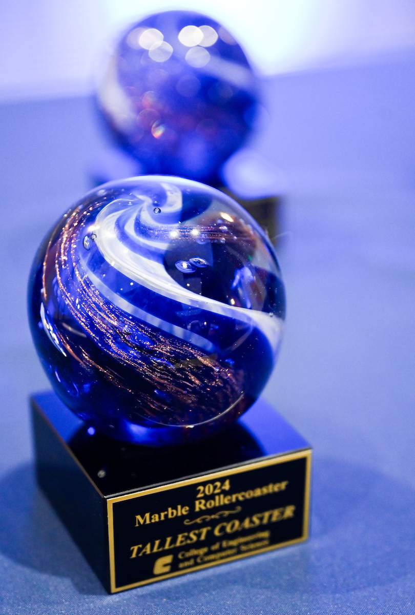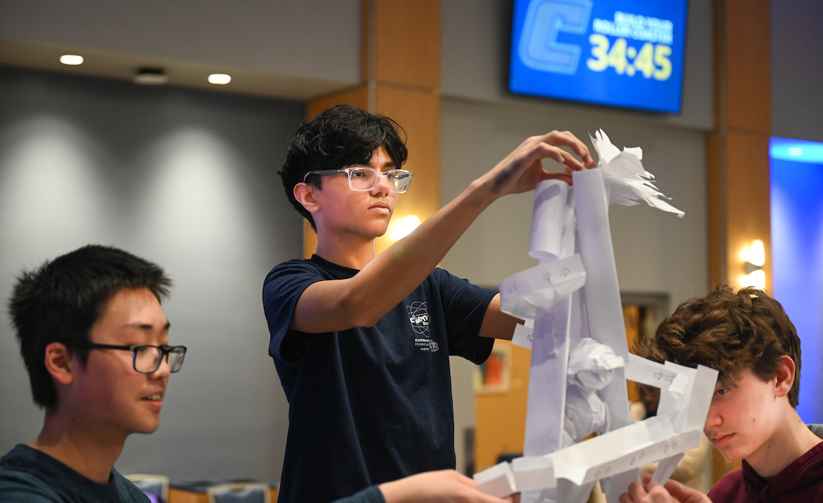 Made from paper, tape and foam, the meter-tall coasters weren’t the kind you would find in an amusement park. Teams of more than 150 students constructed the coasters as part of the third annual Marble Roller Coaster competition.
