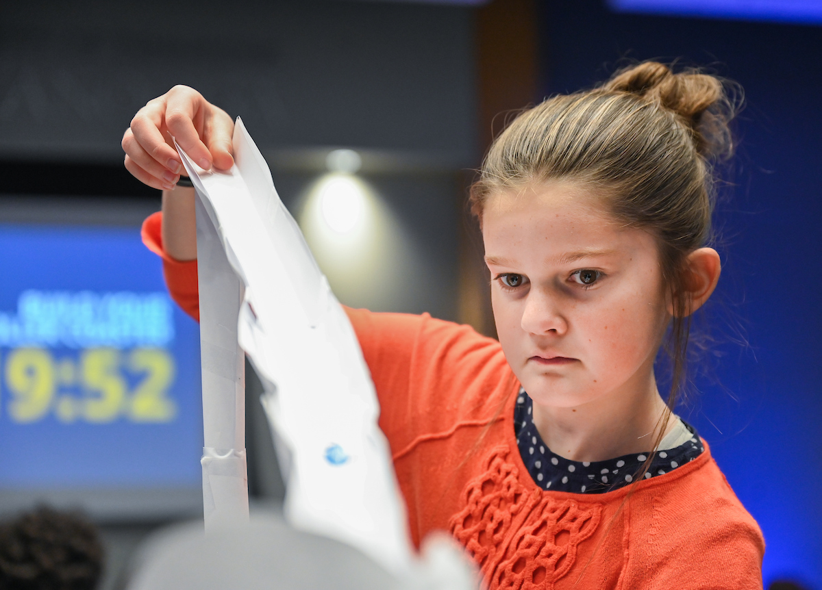 The judges scored on innovation, aesthetics, the structural ability of the coaster, how fast a marble could travel through it and how many times the marble reached the end. The paper coasters had to be over three feet tall and include a loop and a jump.