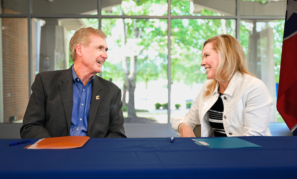 The ceremony, featuring the agreement signing by UTC Chancellor Steven R. Angle and ChattState President Rebecca Ashford, was held in ChattState’s Omniplex Building.