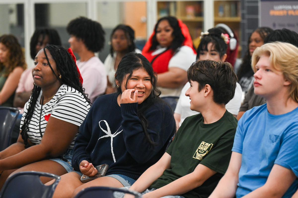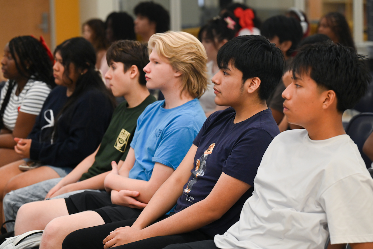 Students meet in Lupton Hall for their first day of University High. Photo by Angela Foster.