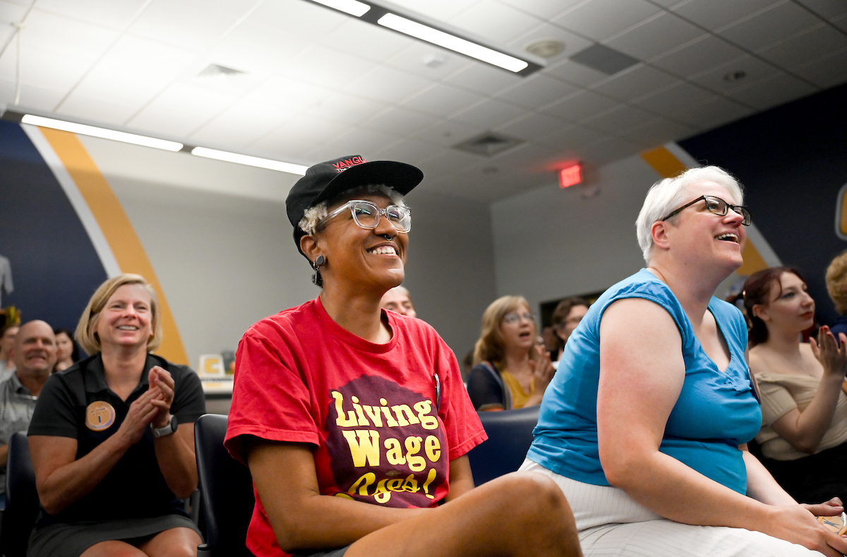 A sense of pride radiated throughout the crowd with each lift, especially from Dr. Chandra Ward, a UC Foundation associate professor of sociology.