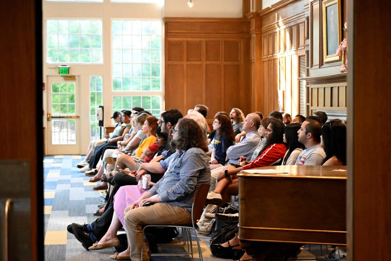 More than 80 people—students, faculty, staff and visitors––turned out to celebrate the launch of a student-led podcast from the University of Tennessee at Chattanooga’s Artificial Intelligence Initiative. Also known as “Chattanooga’s Artificial Intelligence,” the CH-AI team hosted the Thursday, Aug. 29, launch party for “CH-AI Brews: Infusing Conversations About AI” in the Guerry Center on campus.