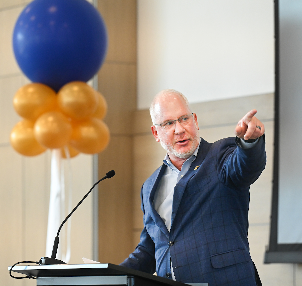 The center also features 6,000 square feet of dedicated event space for campus use—the site of Chancellor Steven R. Angle’s address.