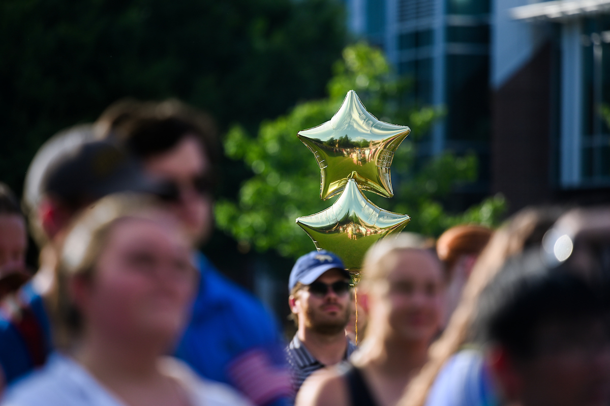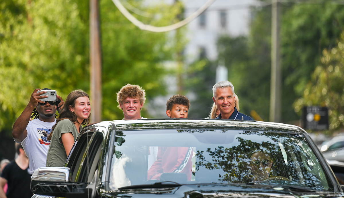 “I think it’s really cool that the school has an Olympian, especially a gold medalist,” he said before the parade went by. “I am very proud to be a Moc today.”