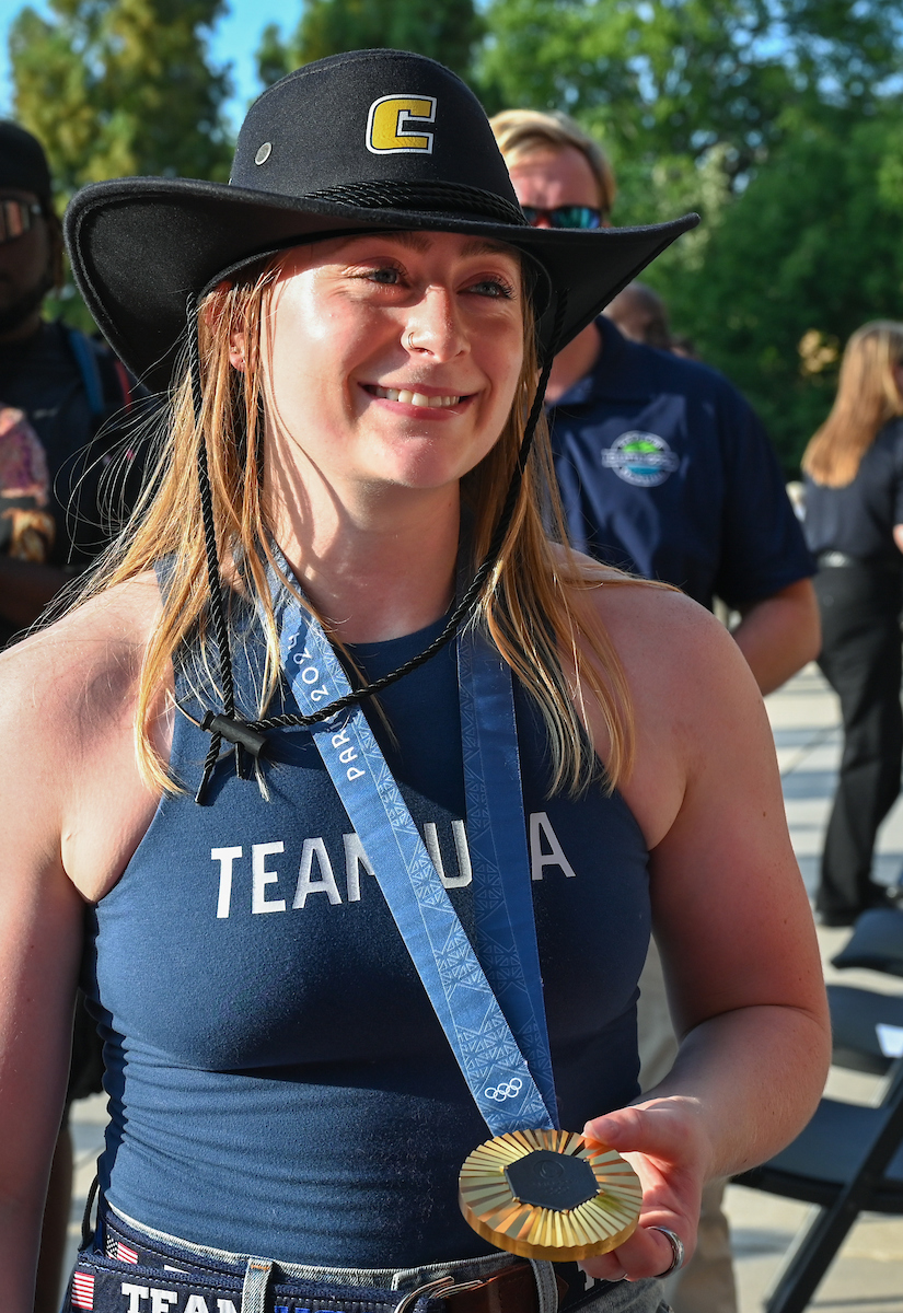 Hamilton County Mayor Weston Wamp took the stage to officially declare Aug. 9, 2024—the date of her Olympic victory—as Olivia Reeves Day. Chattanooga Mayor Tim Kelly then presented Reeves with the key to the city.