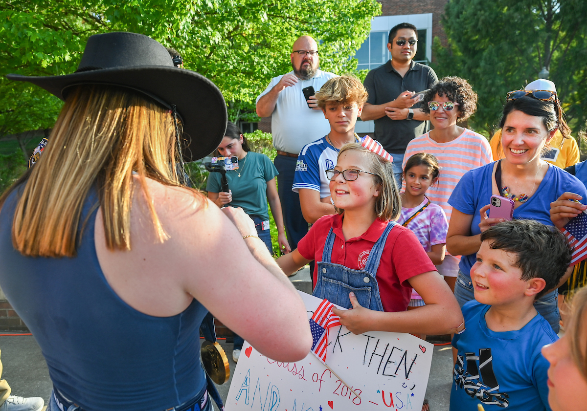 “Olivia, I want to say one thing to you as a dad, not just as the county mayor. We’re here to celebrate your accomplishments, which are beyond the accomplishments to my knowledge of anybody who’s here celebrating you—and that’s a big deal and we’re extremely proud of you. But I think what means more to this community is that for a generation—at least when moms and dads and coaches and teachers have this conversation with little kids about who they can be and about what’s realistic in their life—that conversation’s going to go differently because of what you did in Paris.
