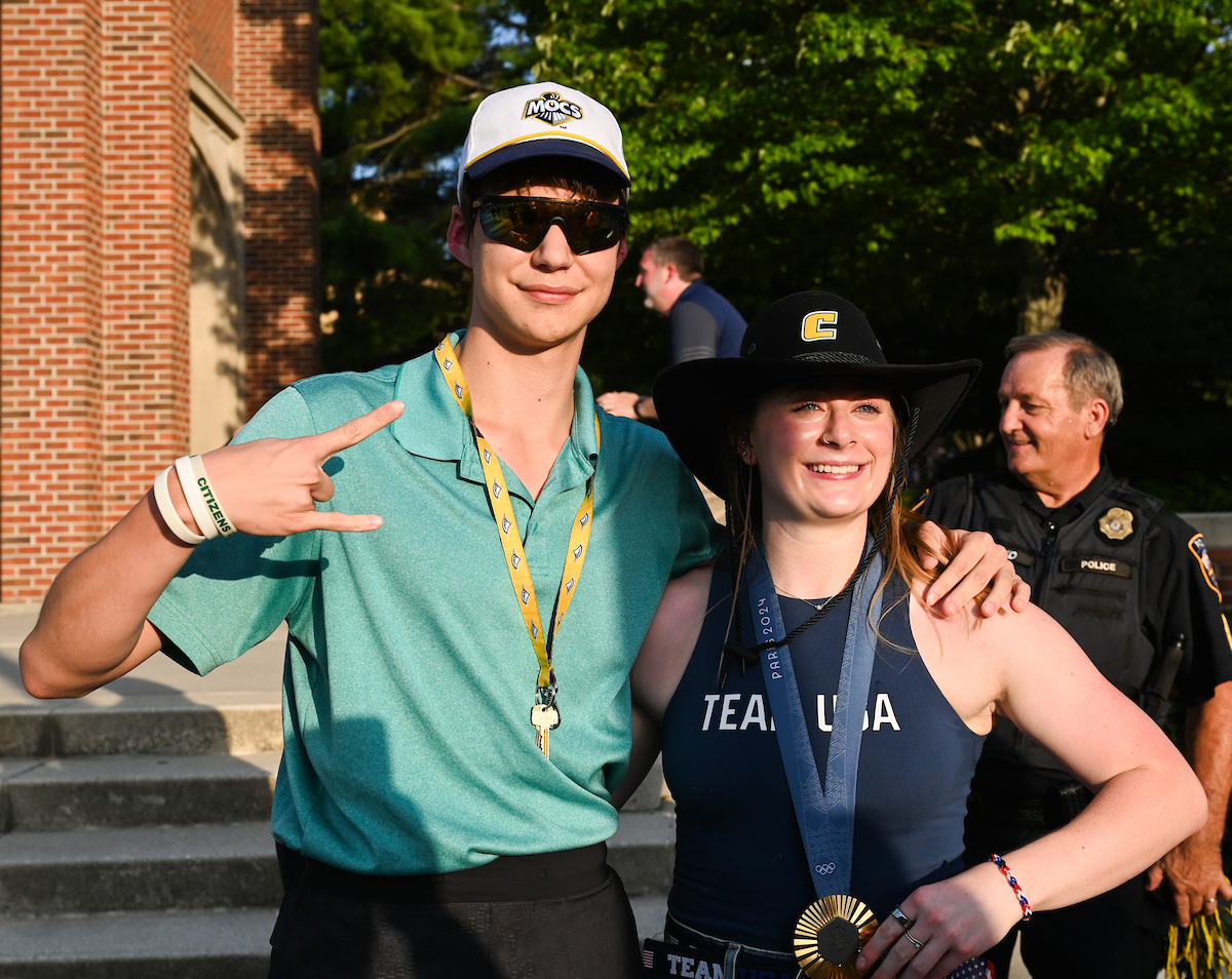 “She embodies this Mocs spirit of working hard, achieving excellence, doing your best, and notdoing it the conventional way,” UTC Chancellor Steve Angle said in his welcoming remarks. “I had not watched an Olympic weightlifting competition until hers, at least from beginning to end, and it was so much fun. My gosh, she brought our campus community, state and nation together cheering for her.
