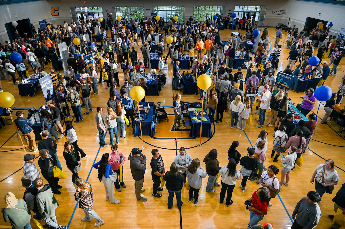 In addition to campus tours, information sessions and an application workshop, UTC faculty, advisors and current students set up booths in the Aquatic and Recreation Center.