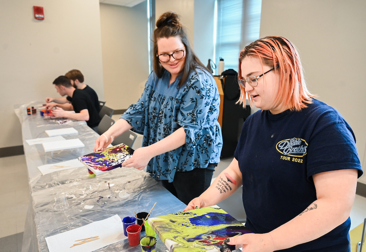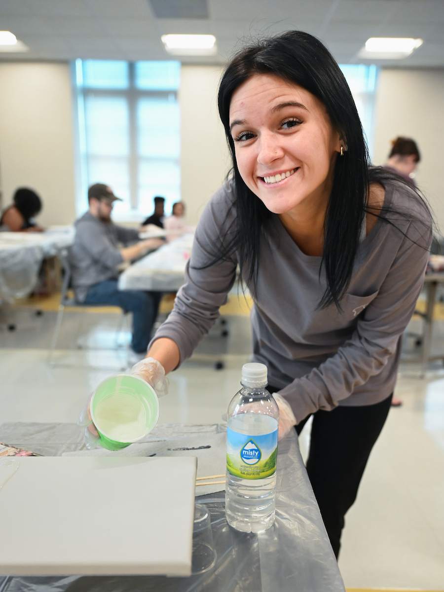Students in Dr. Katelyn Hancock’s “Ethics in Criminal Justice” course painted for “Pouring for Purpose” on Tuesday, Nov. 5. Photo by Angela Foster.