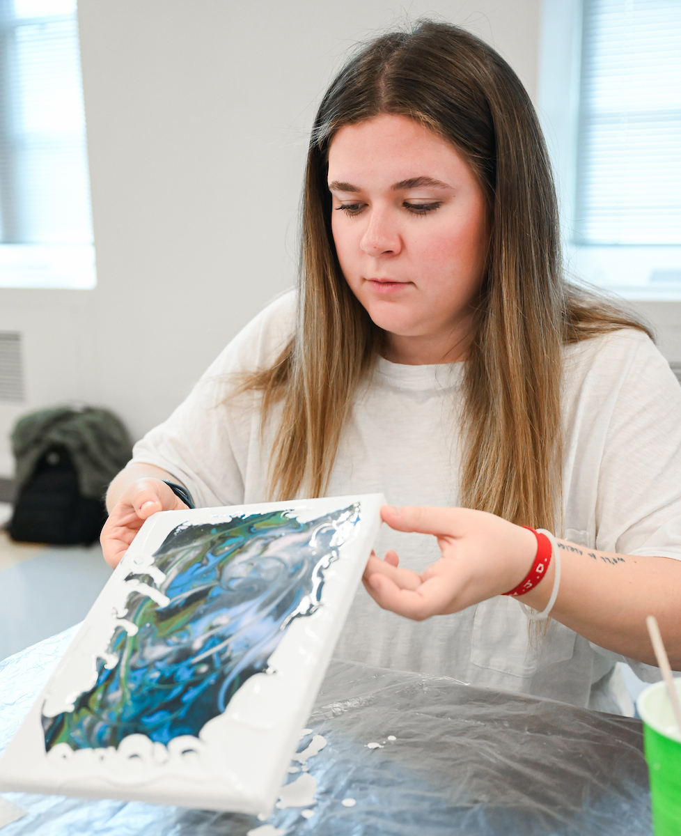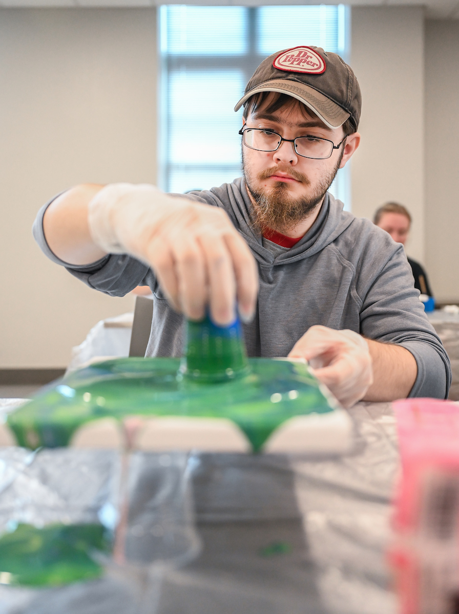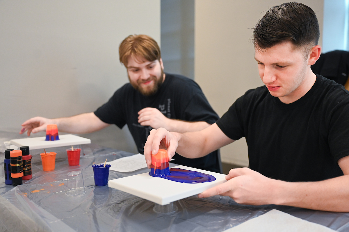 “I really enjoy pour painting in general and to be able to link it to a core course in our program is always so rewarding,” said Hancock, an assistant professor of criminal justice. “In the past three years hosting this project and gallery, I have had so many students tell me they learned better this way or—at the very least—had such a fun class on this day.