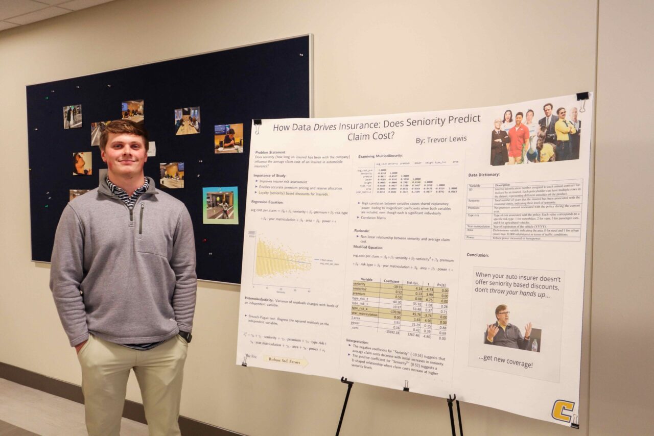 “He did a good job of giving an overview of the model and the process of how you go about building one of these models,” said Lewis, whose project was titled “How Data Drives Insurance: Does Seniority Predict Claim Cost?”