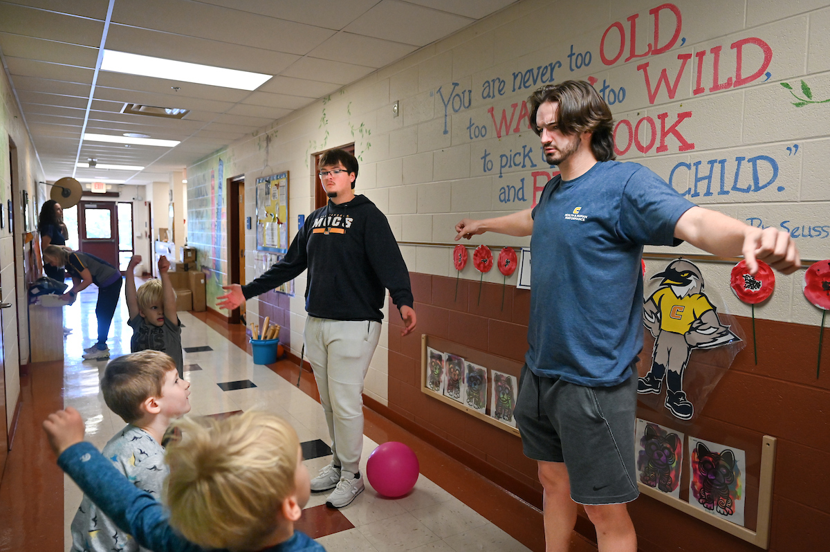 In November, six UTC Health and Physical Education students taught physical education lessons at the UTC Children’s Center at Brown Academy. These lessons taught children the importance of taking care of their bodies and finding happiness through physical activity. Photo by Angela Foster.