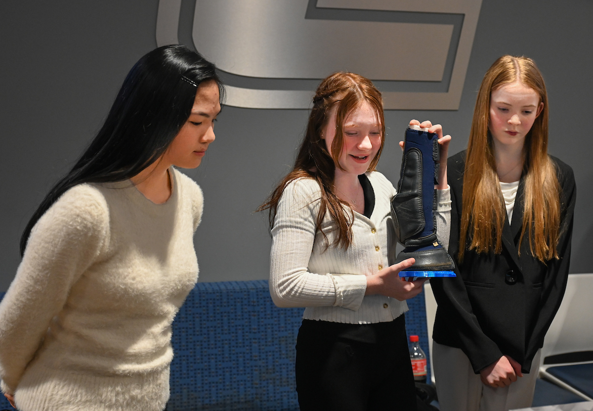 Ocoee Middle School students Jackson Kahn, left, Will Seahorn and Graham Hines presented a pickleball solution to assist with boundary calls.